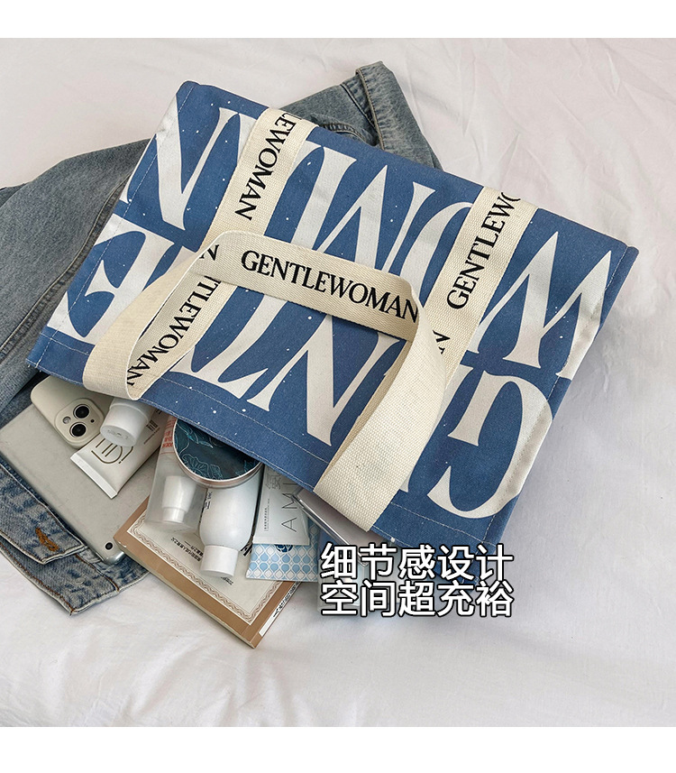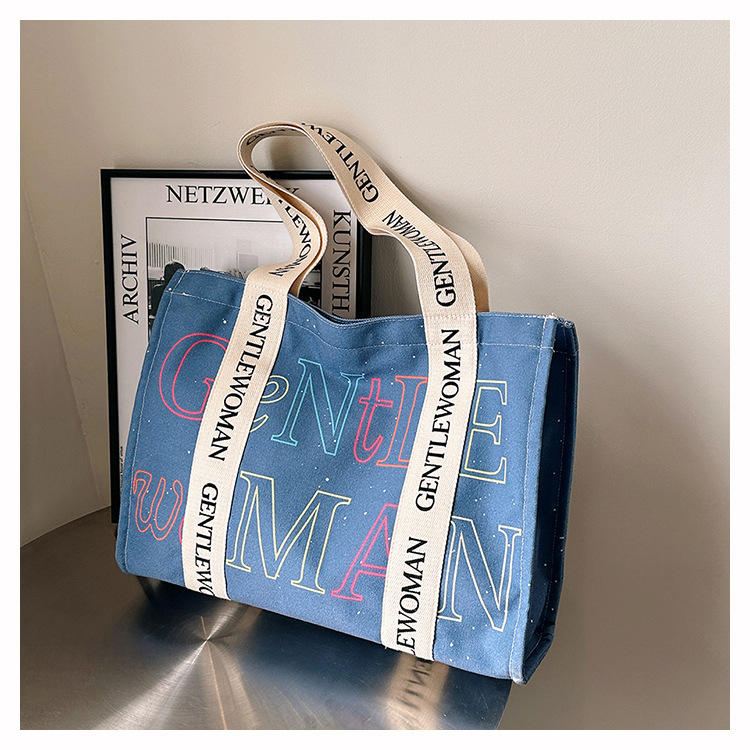 2024夏の新しいアルファベットのキャンバスバッグgentlewoman大容量トートバッグ幅ショルダーストラップ