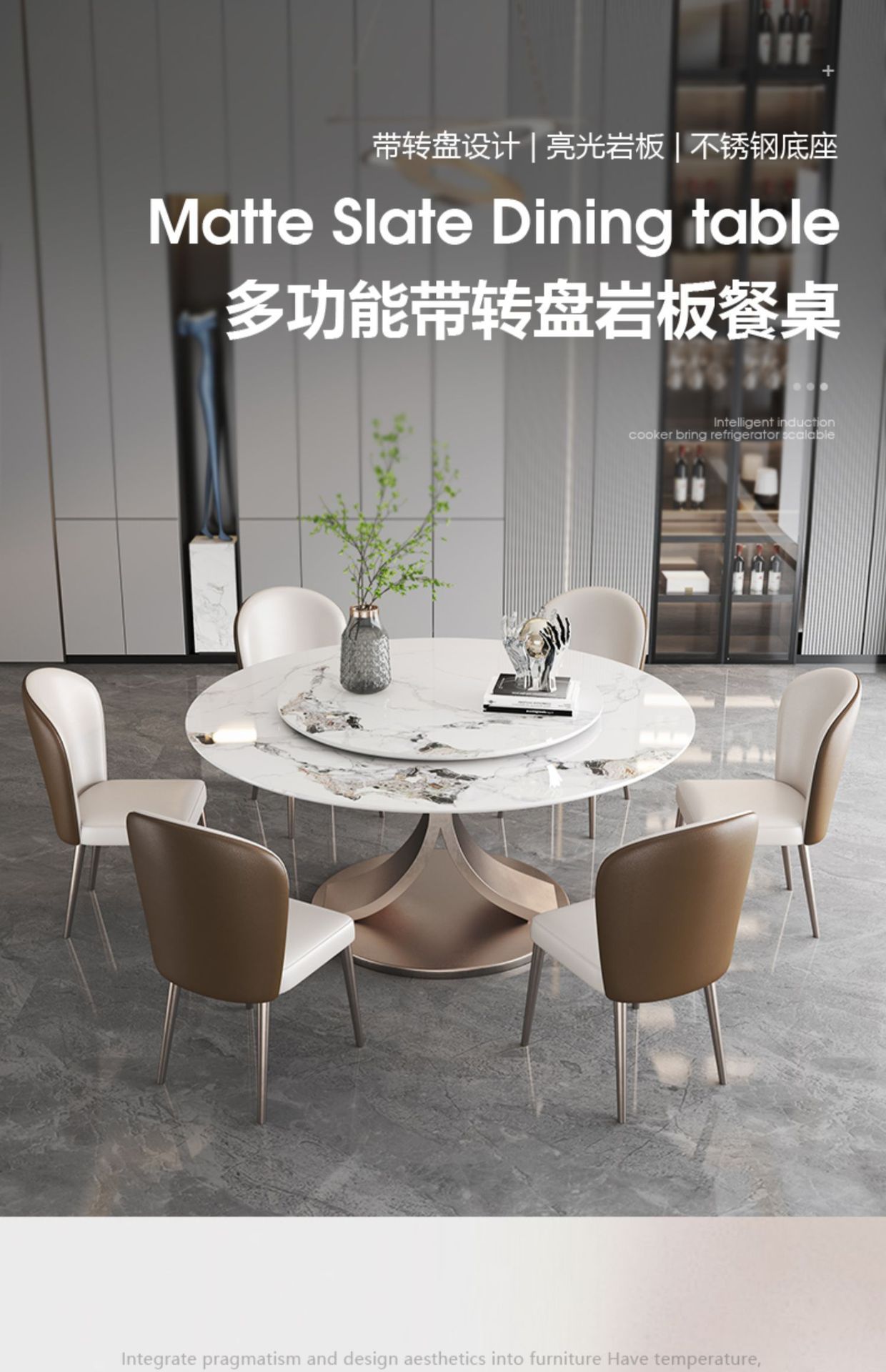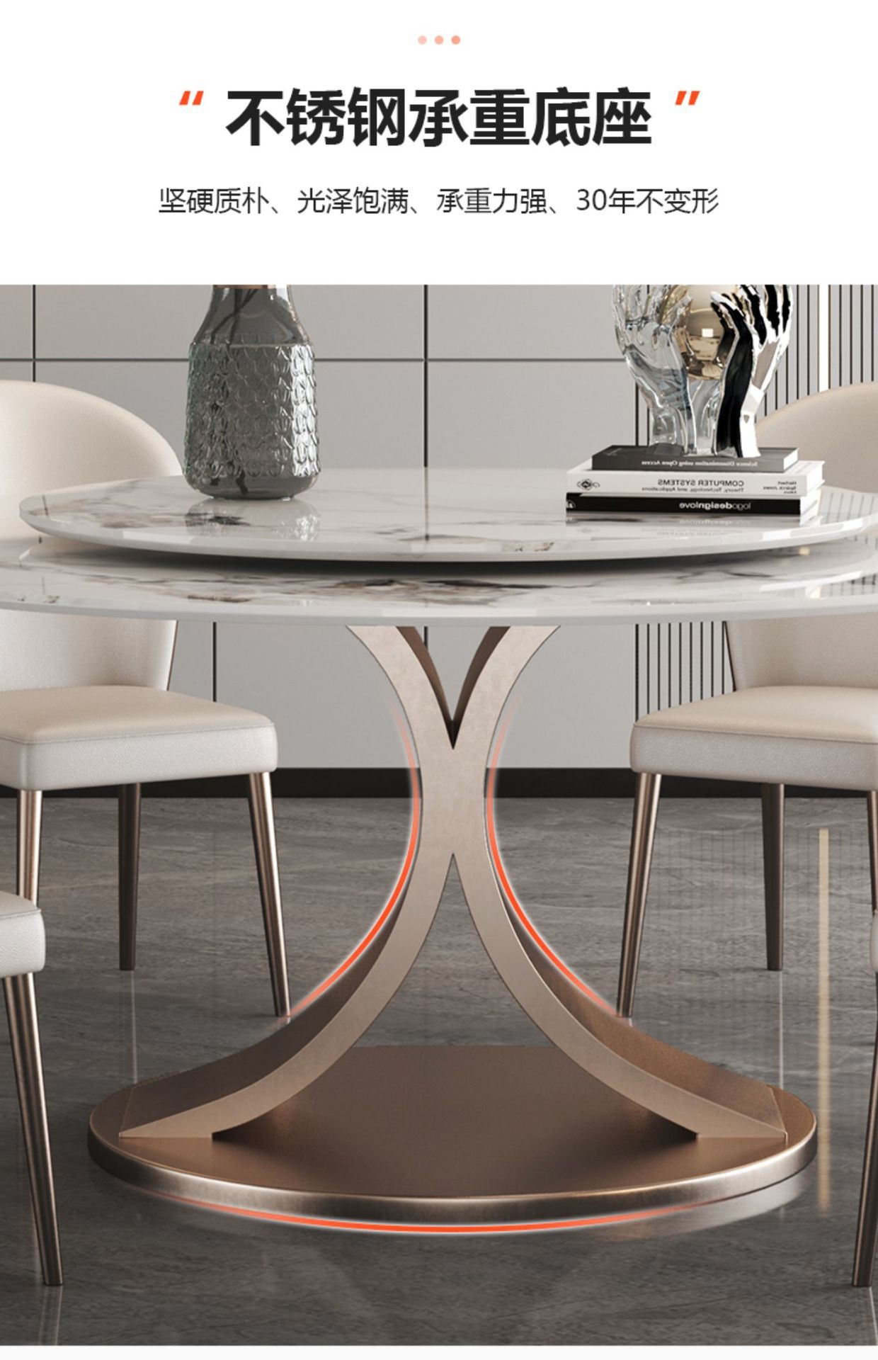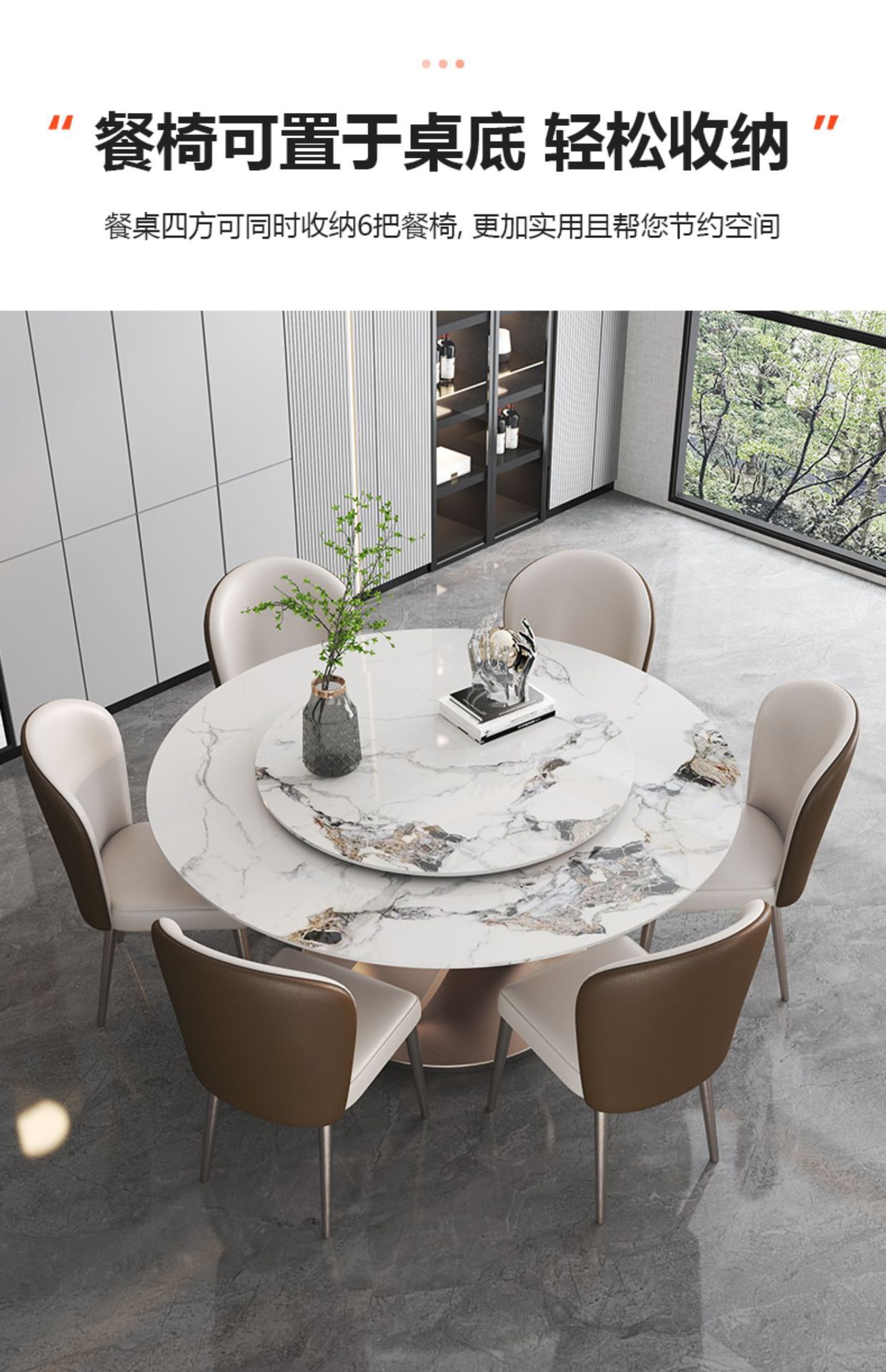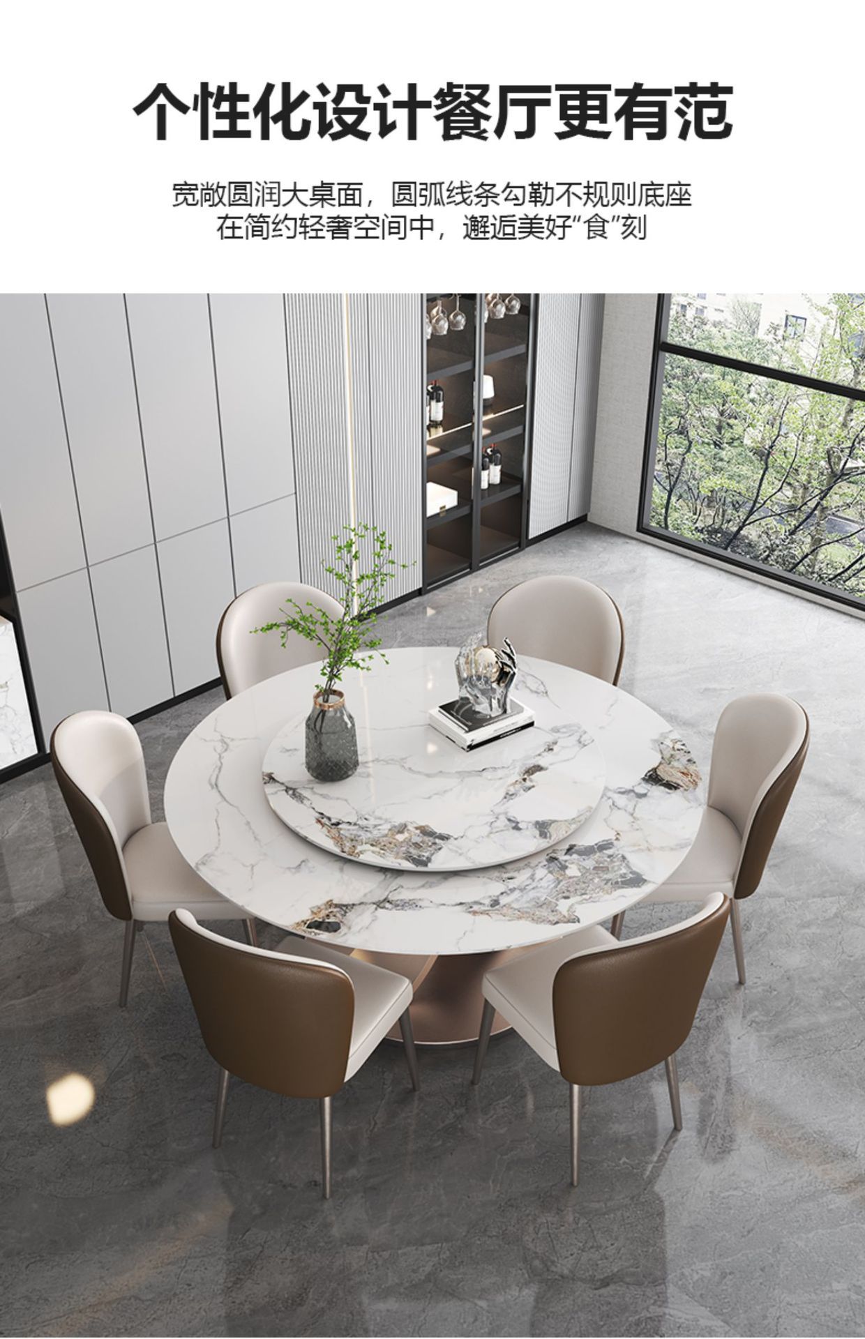 岩板食卓円形家庭用小戸型軽豪華現代シンプル高級光沢帯ターンテーブル家庭用リビングテーブル