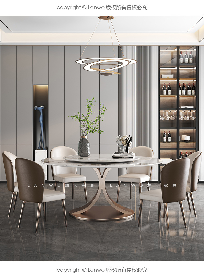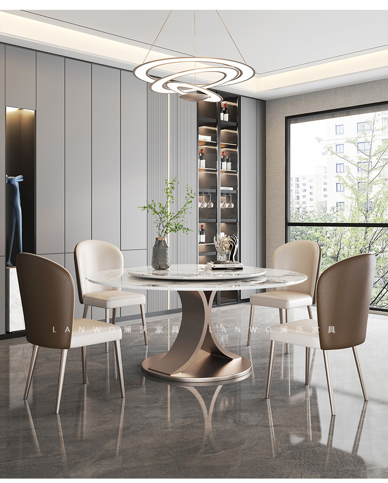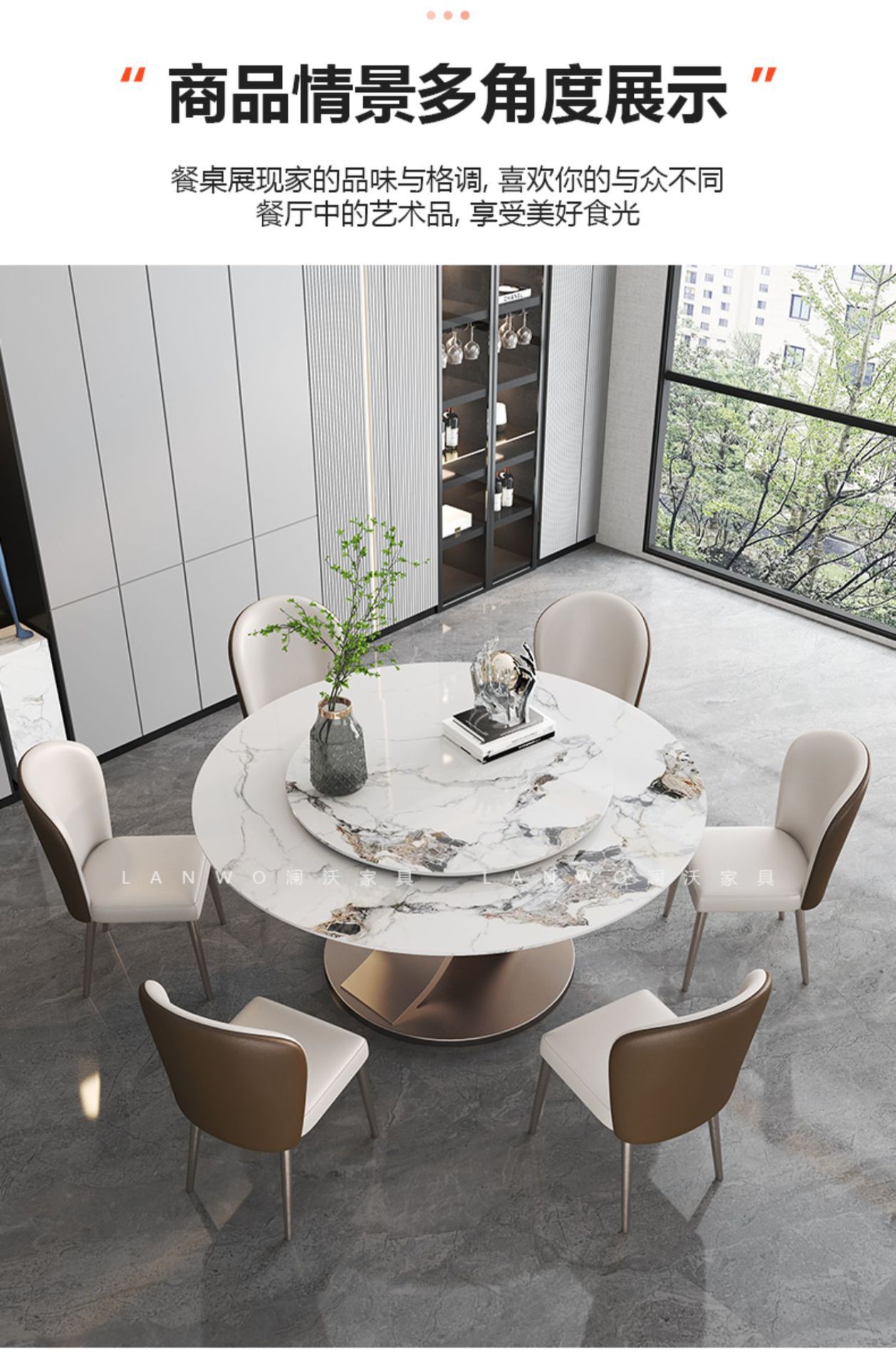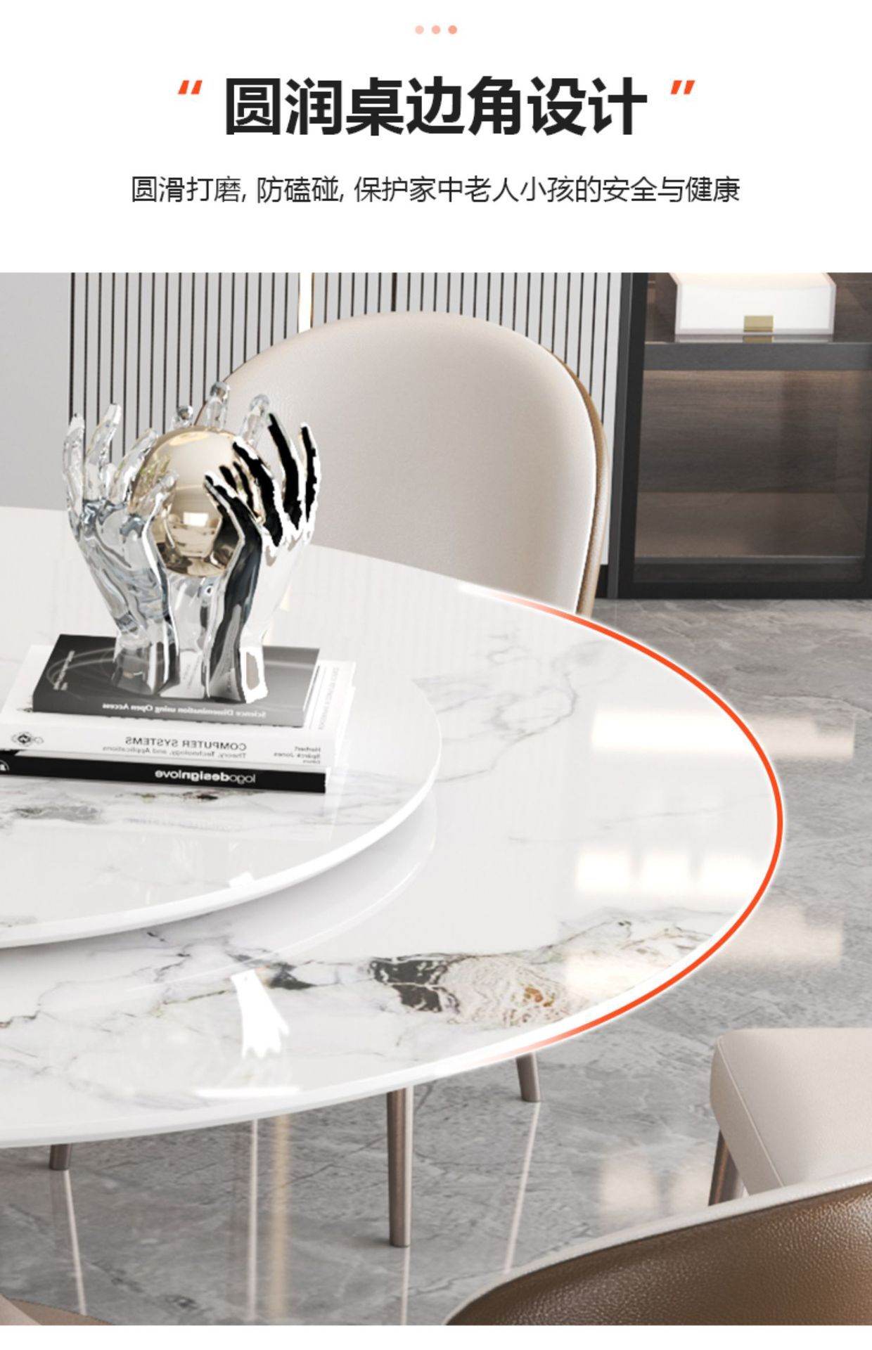 岩板食卓円形家庭用小戸型軽豪華現代シンプル高級光沢帯ターンテーブル家庭用リビングテーブル