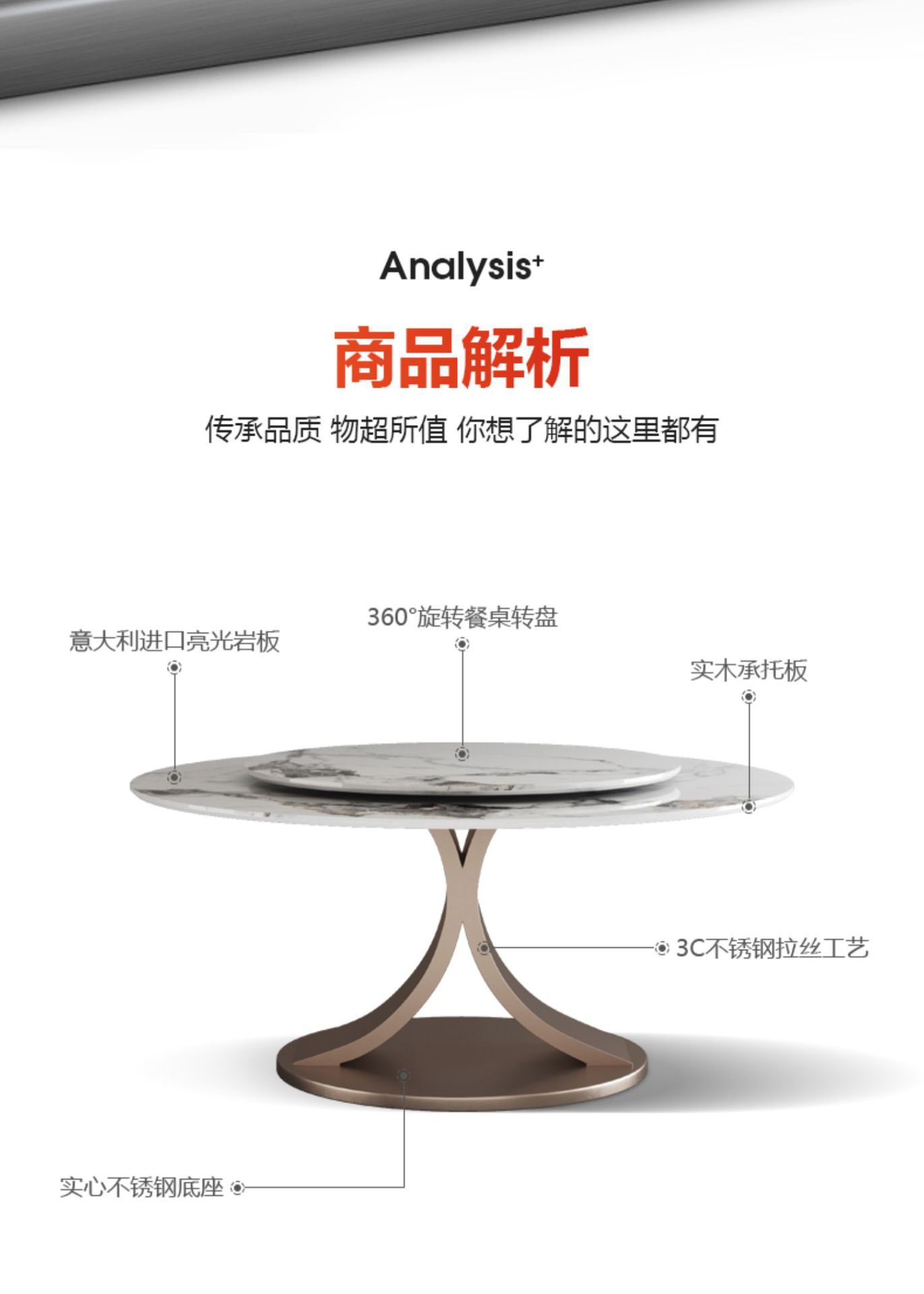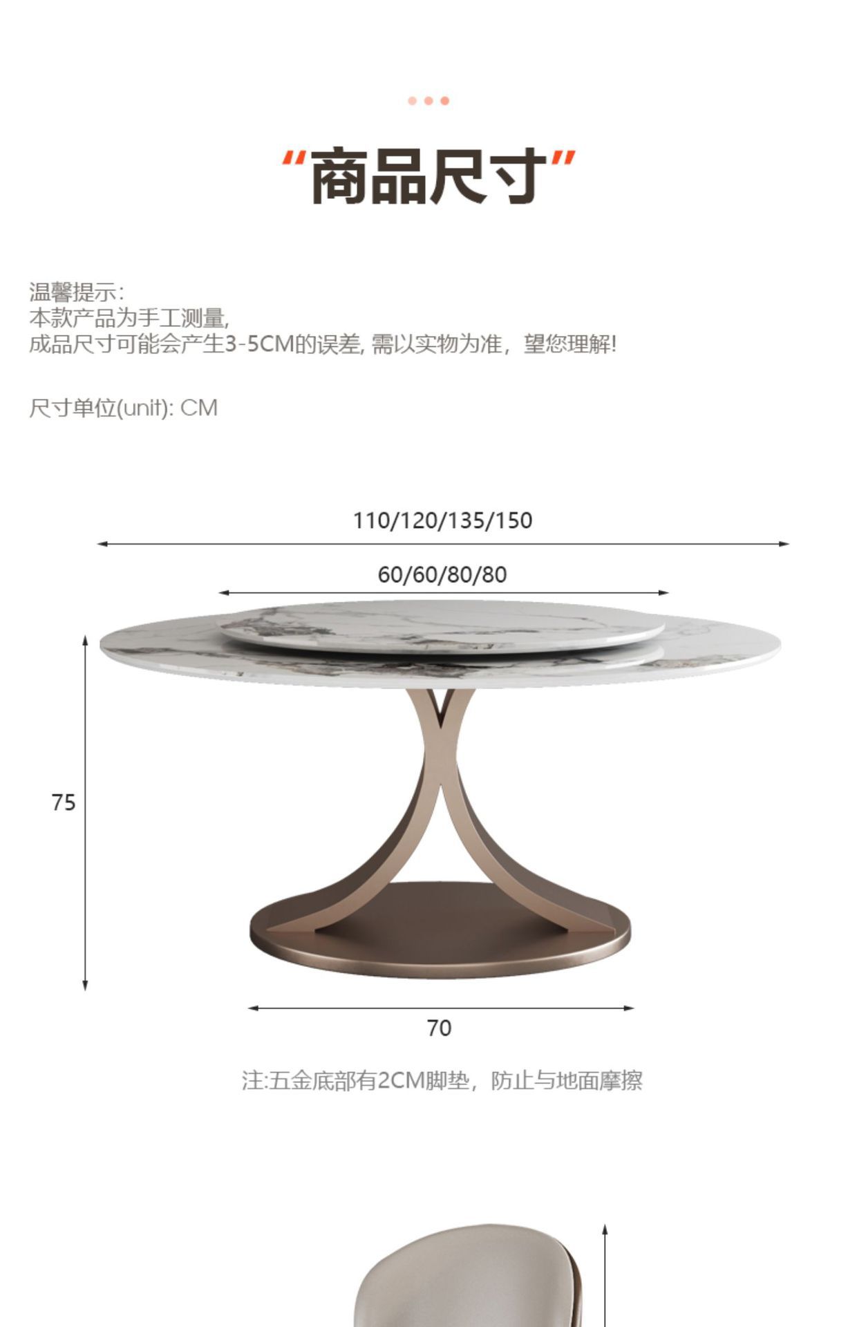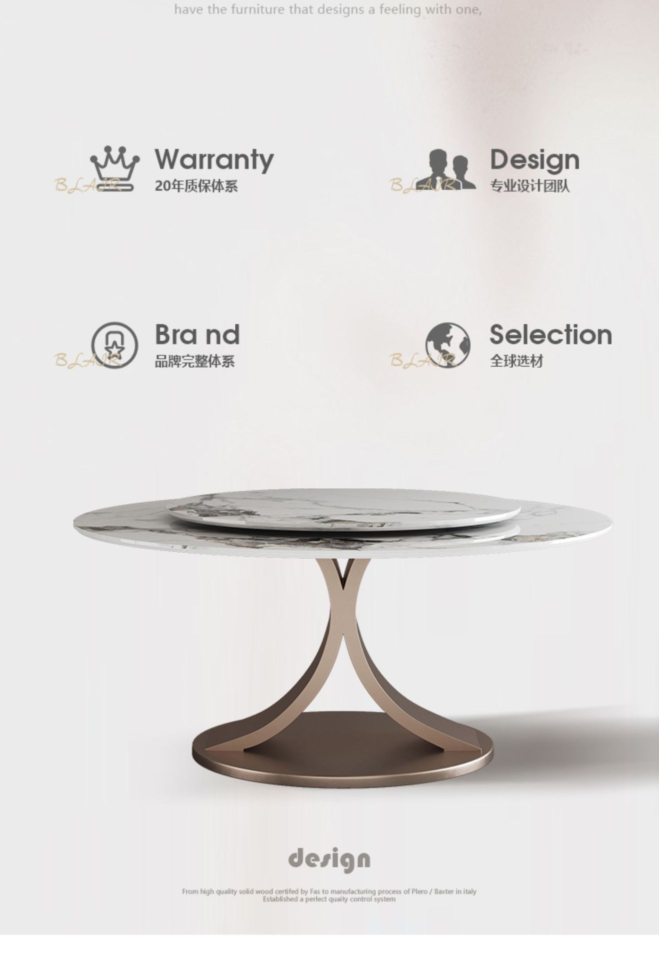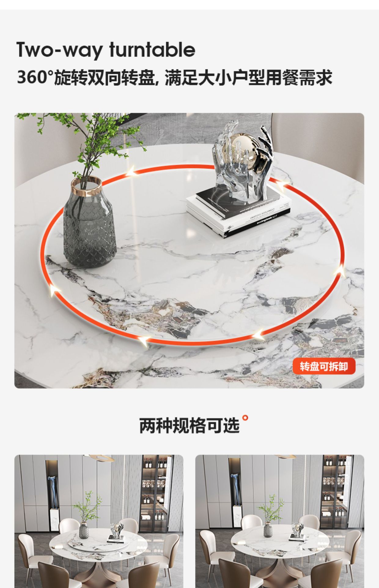 岩板食卓円形家庭用小戸型軽豪華現代シンプル高級光沢帯ターンテーブル家庭用リビングテーブル