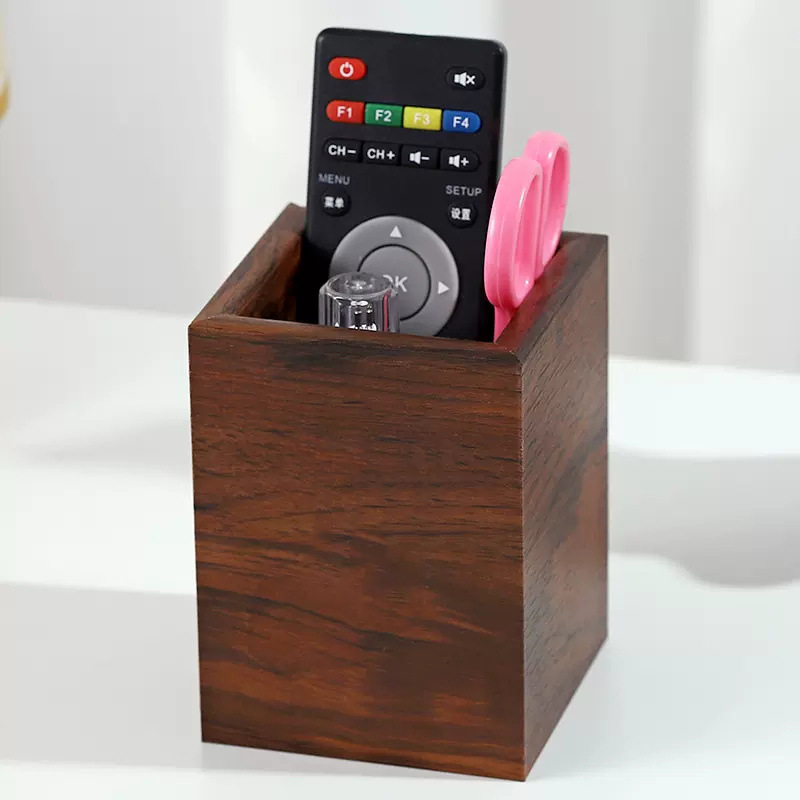 匯星1001木製ペン立て、正方形、シンプルなペンホルダー、リモコン収納、デスクトップ整理、ビジネススタイル、ビジネスギフト