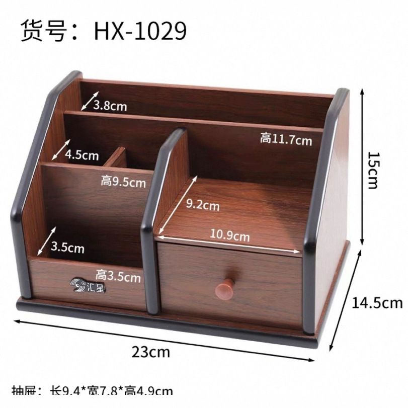 汇星笔筒办公室木质口红储物盒桌面置物架首饰家用遥控器文具抽
