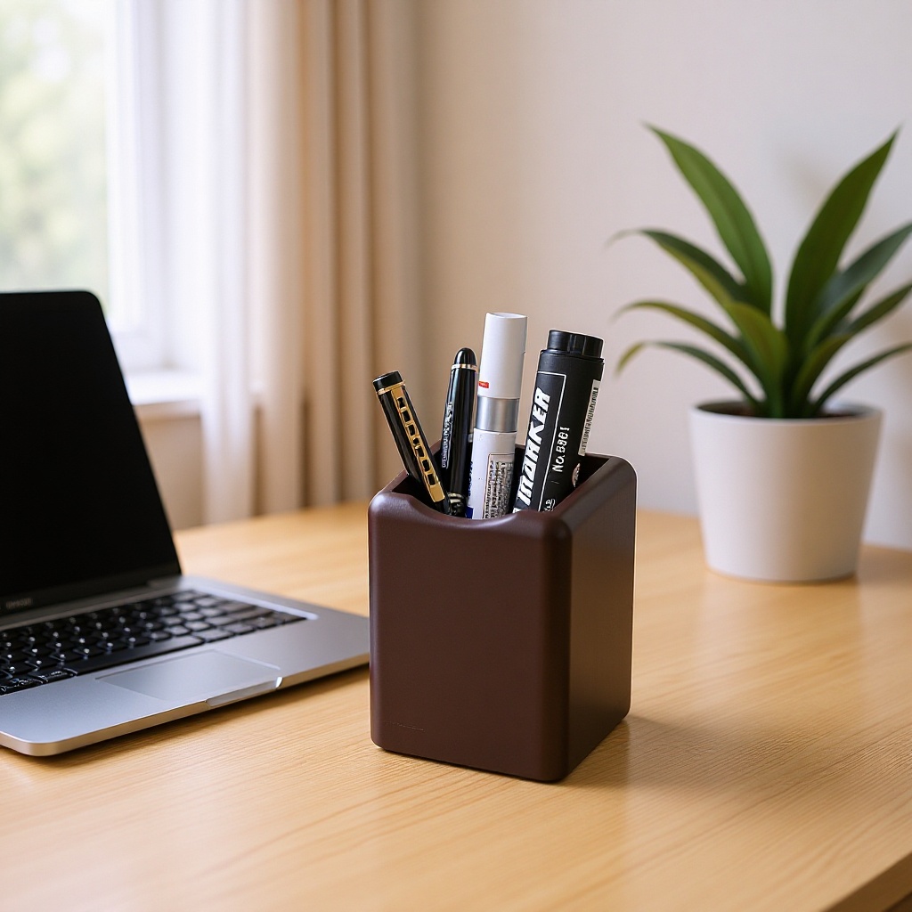 汇星1031簡易木製筆立て収納ペンホルダートランペット筆立てデスクトップ収納整理角型筆立て収納