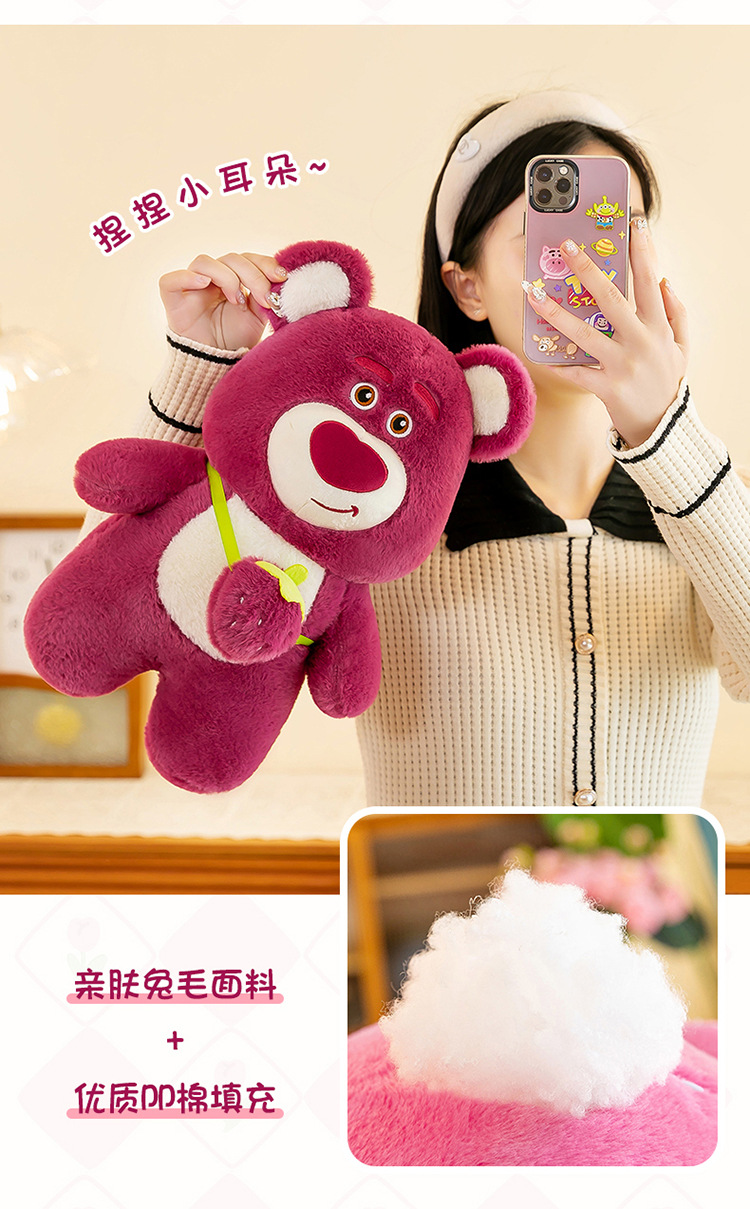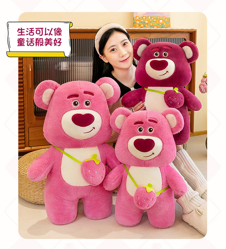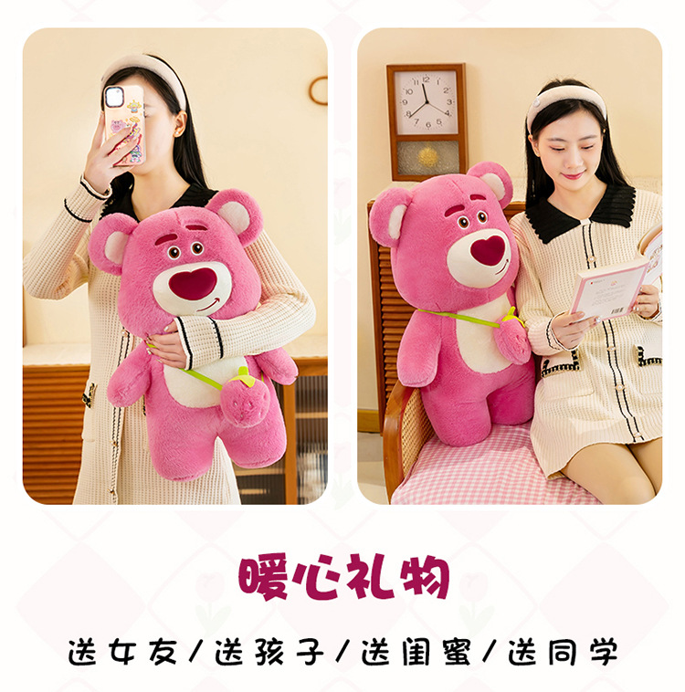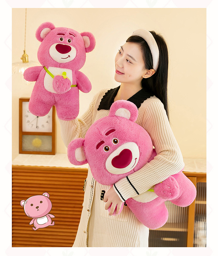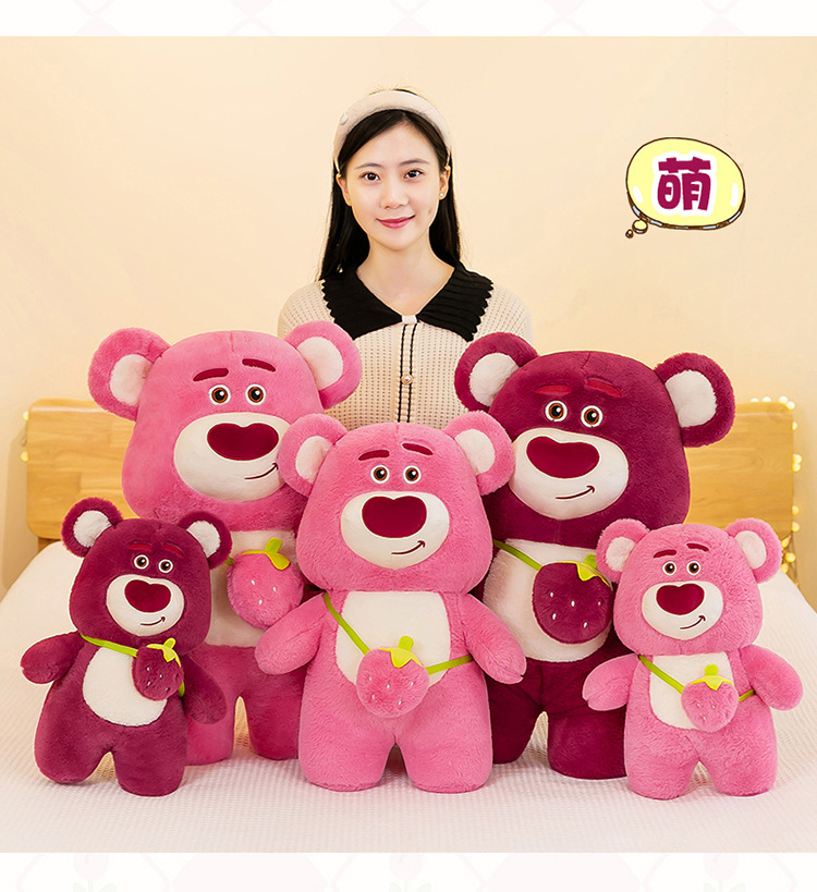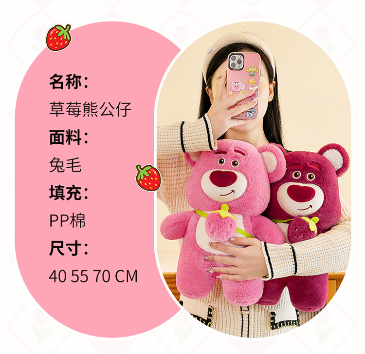 漫画いちご熊ぬいぐるみ子供誕生日プレゼントいちごバックパック熊公仔女の子抱き枕リング卸売り
