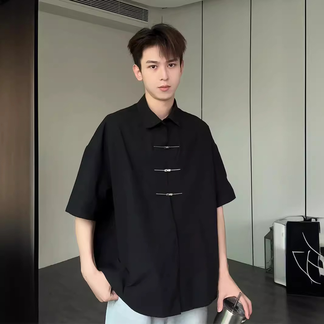 2025 若い大人のスタイルハンサムなアイスシルク半袖シャツメンズ夏の新しい中国風のメンズシャツボーイズ薄手のジャケット