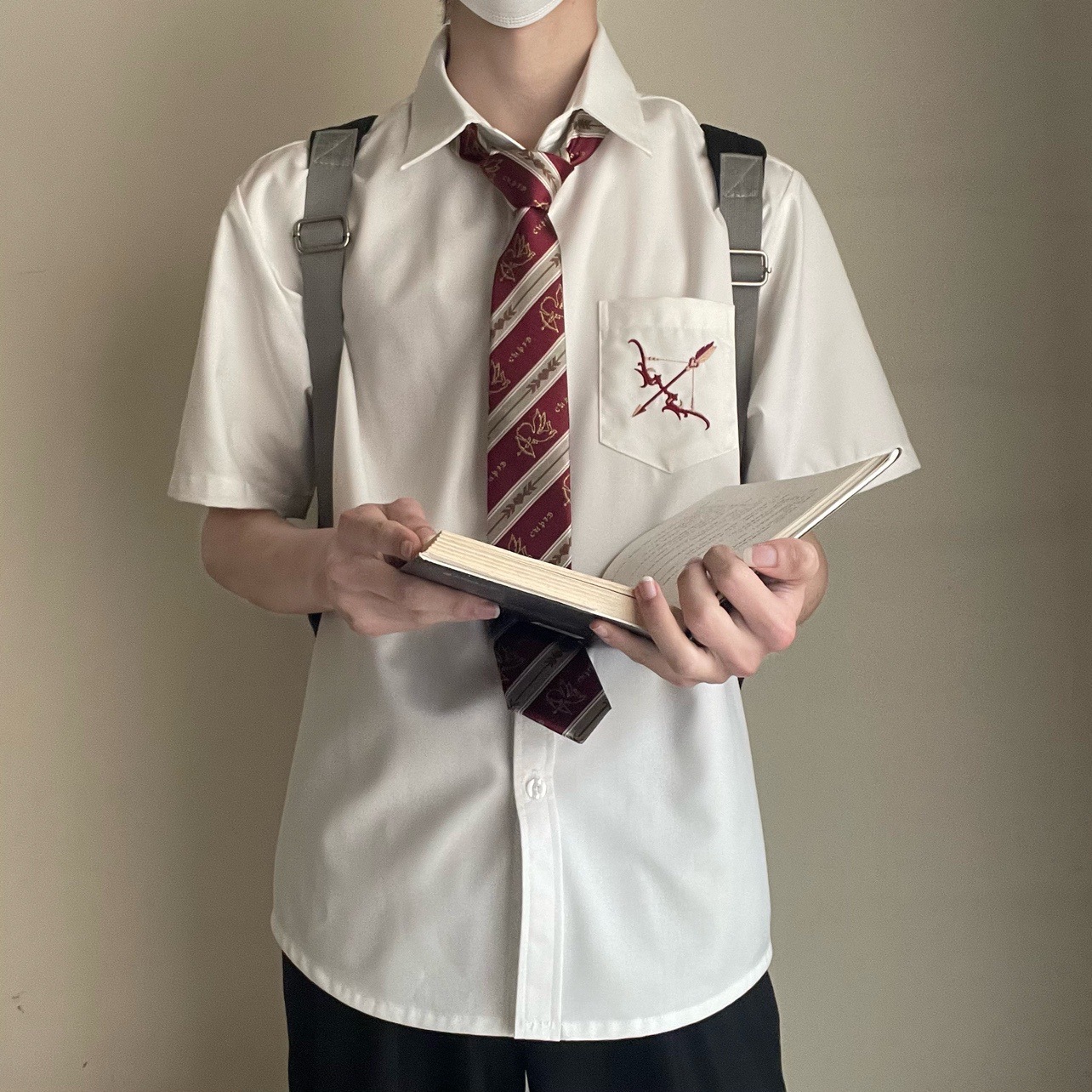 爱神丘比特dk制服白色刺绣衬衫男短袖夏季学院风毕业班服休闲衬衣