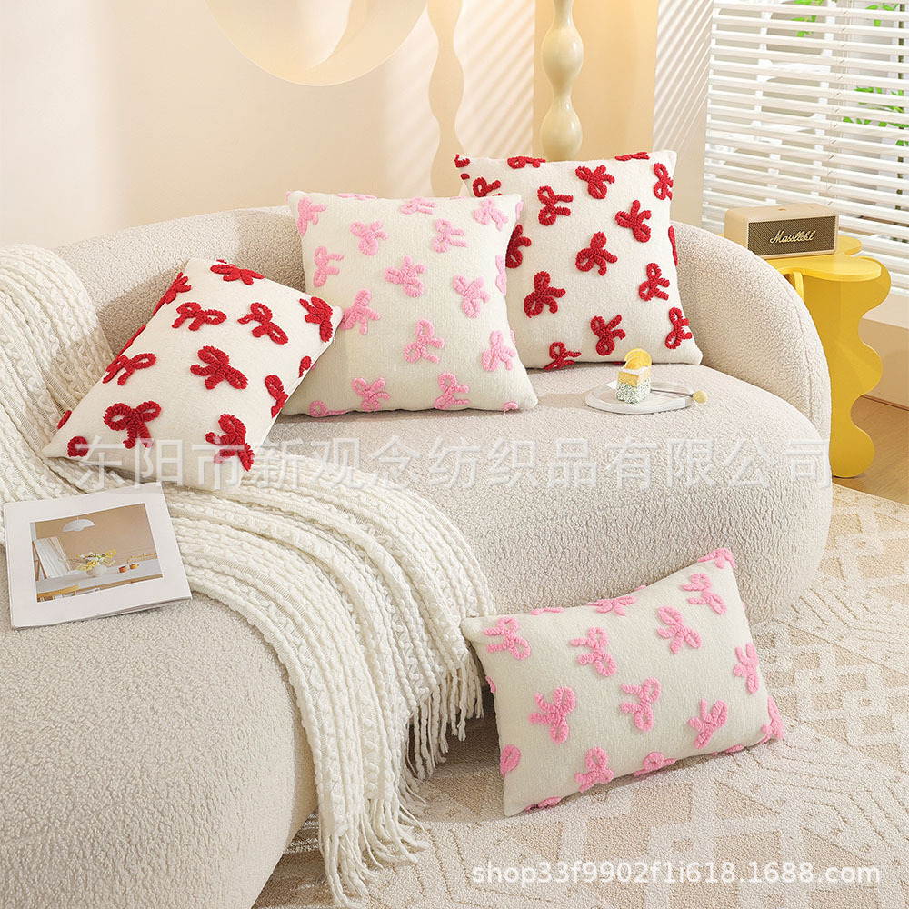 クロスボーダーの新型抱き枕カバーは子羊の毛のジャカードの蝶結びのソファーの装飾のクッションの卸売りのかわいい腰を推薦します。