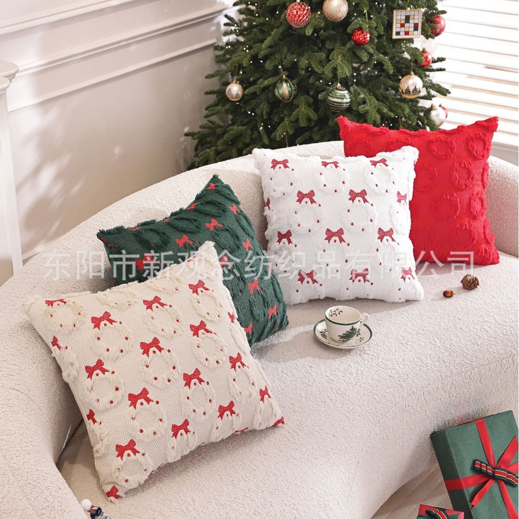 新しいぬいぐるみ枕カバーリボンガーランド刺繍クリスマス装飾ソファ枕寝室のベッドサイド枕