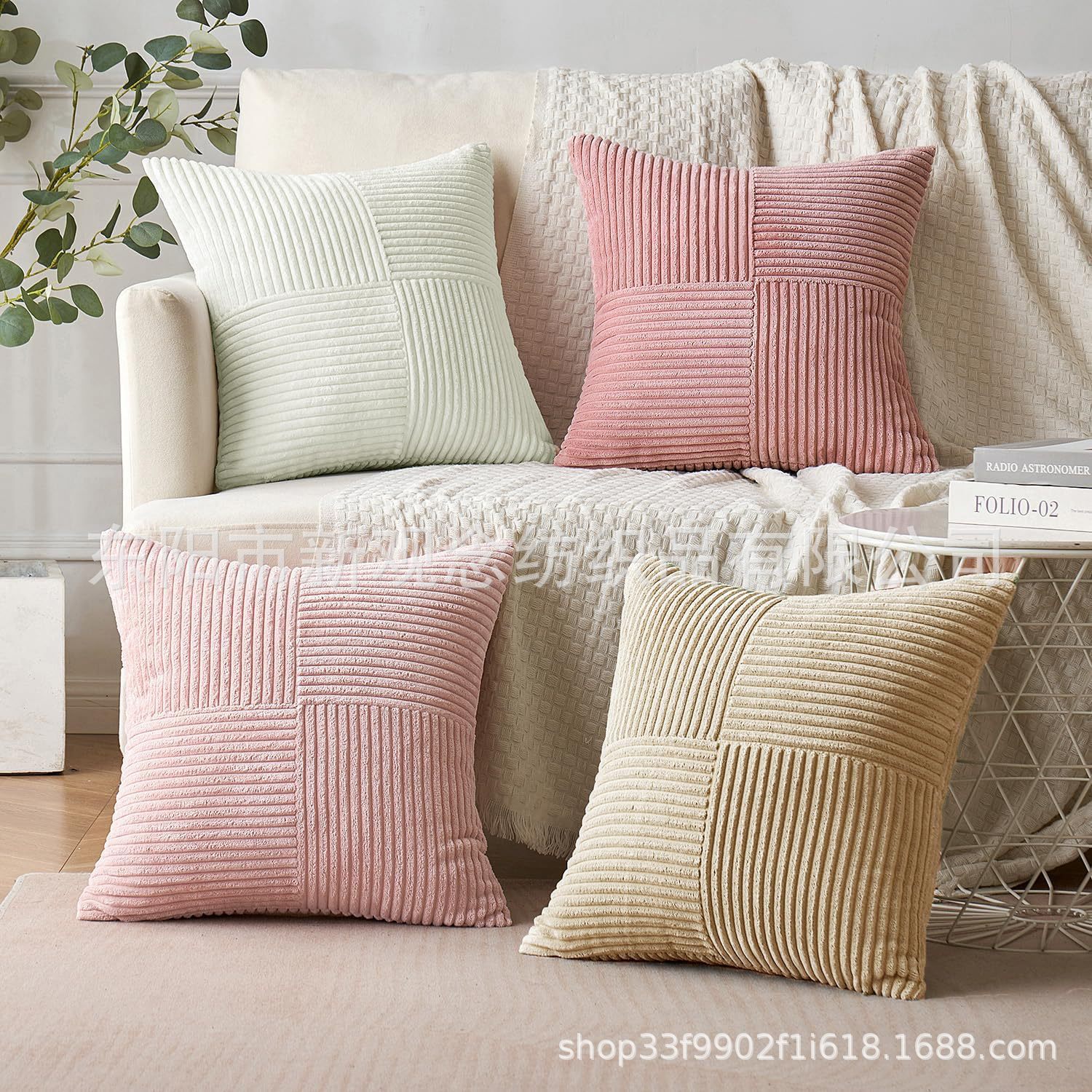 アマゾンの人気装飾抱き枕カバーのコーデュロイのストライプをつなぎ合わせてクッションをクロスボーダーします。