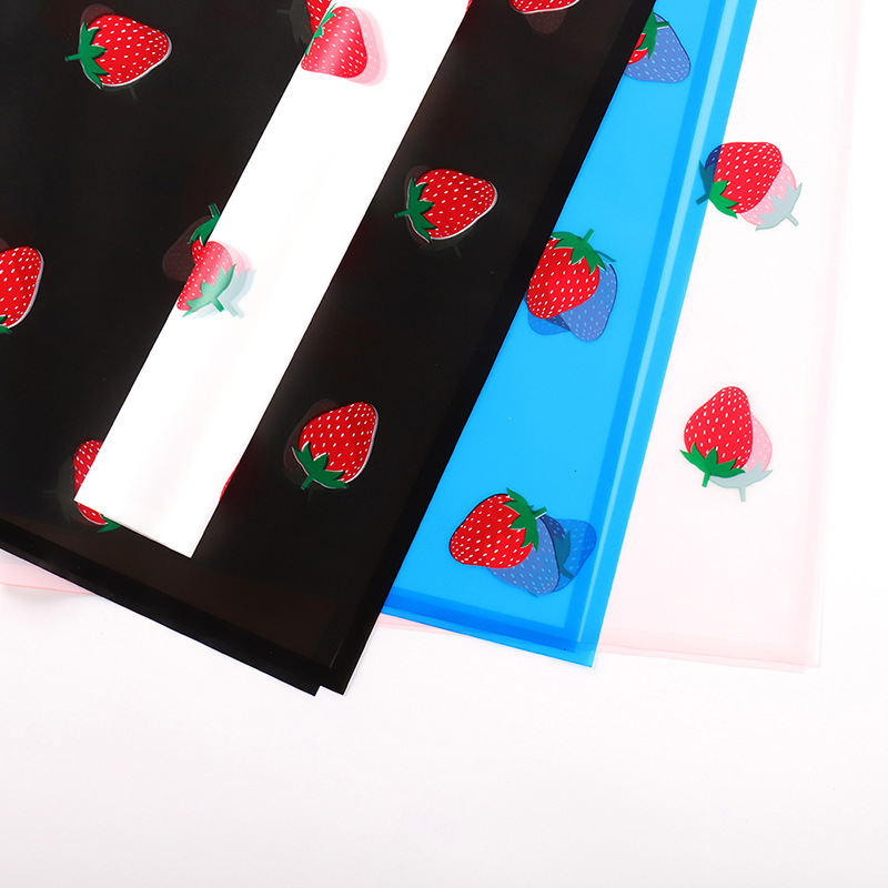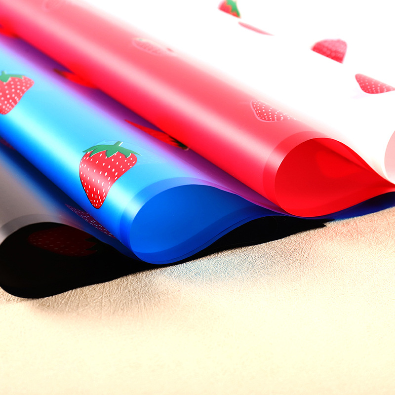 卸売りは花屋のバラの花の紙を注文して縁のイチゴの図の霧の表面の防水の韓国式の半透明の生花の包装の紙をつぶします。