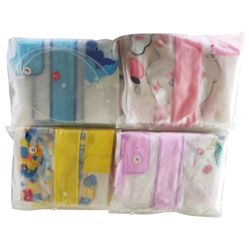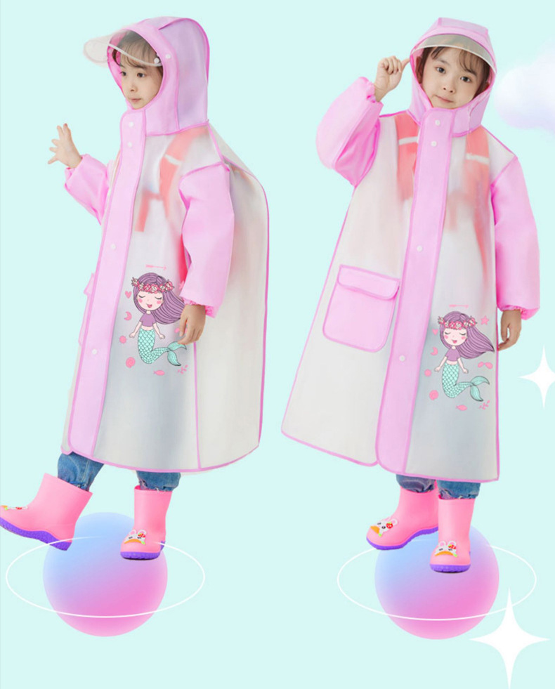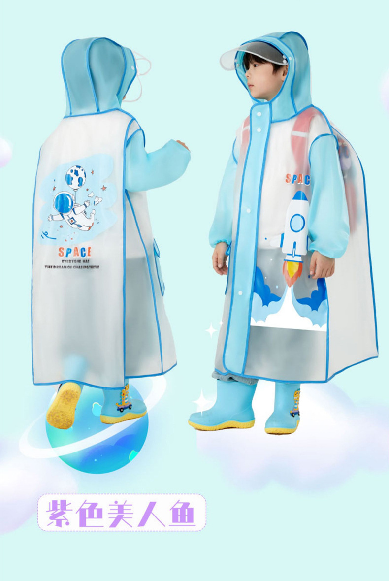 インスタ映え韓国風子供用レインコート 厚手 バッグ収納可能 EVA二重帽子 小学生用 ロング丈全身レインコート 防水