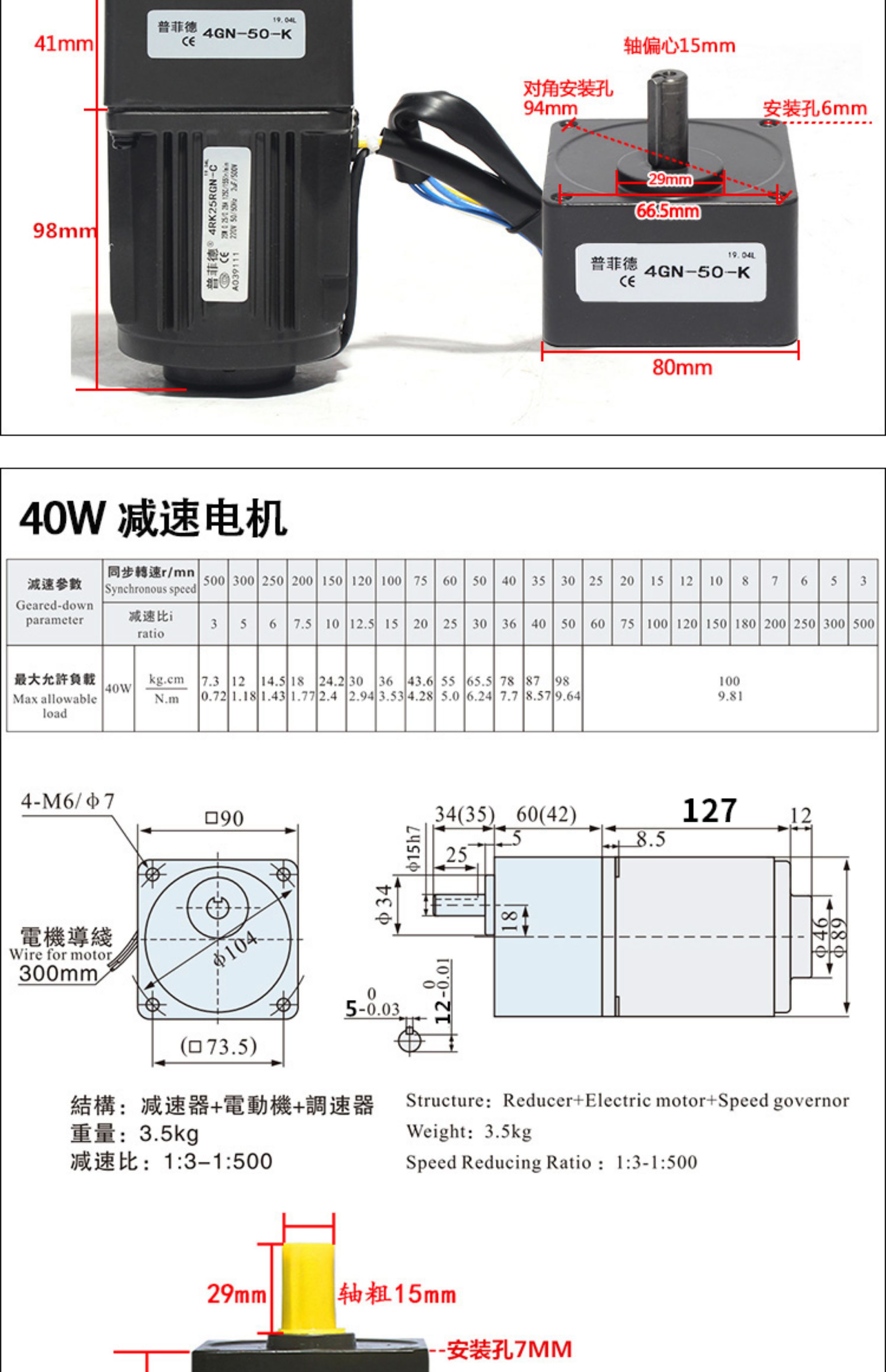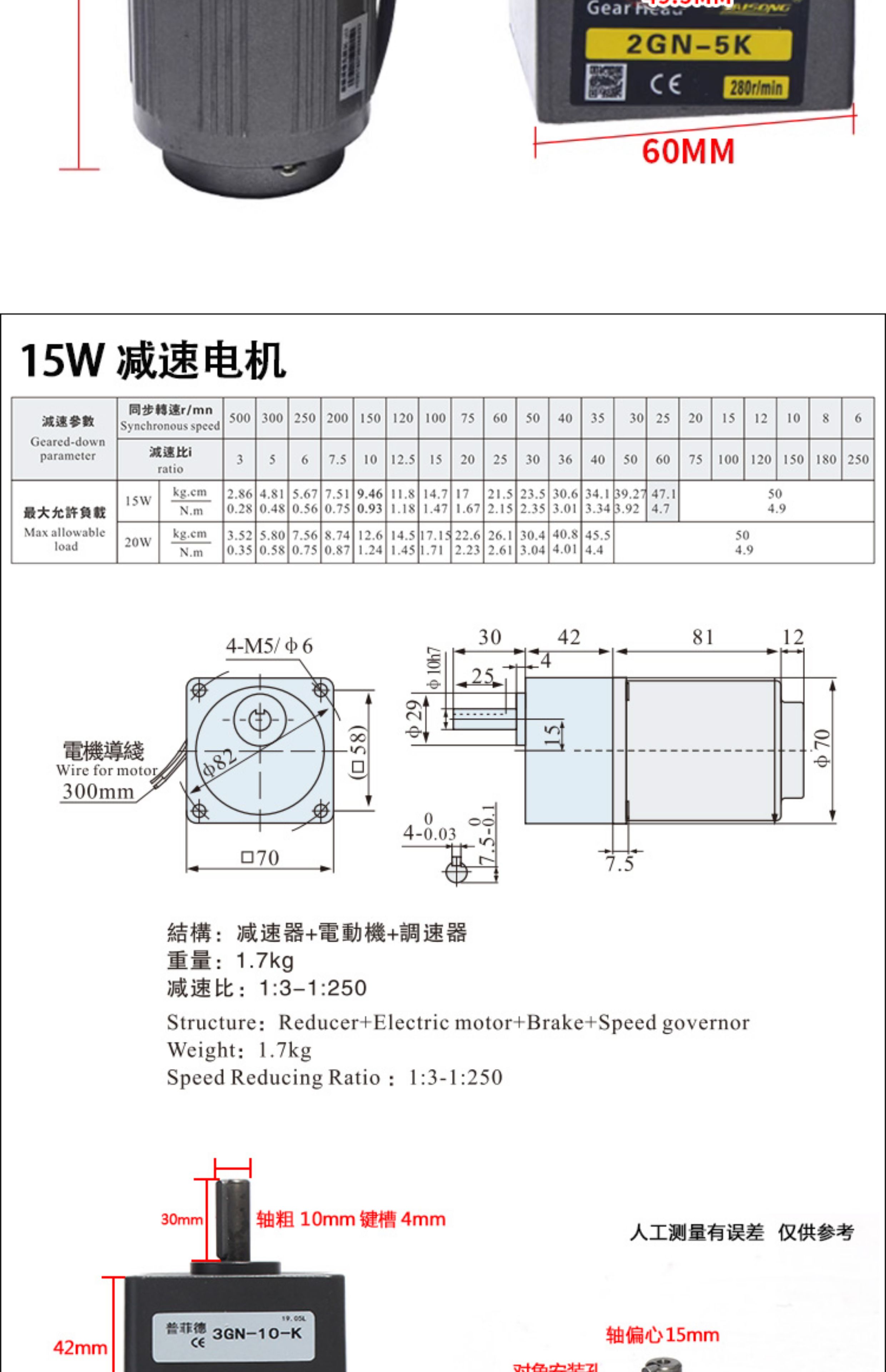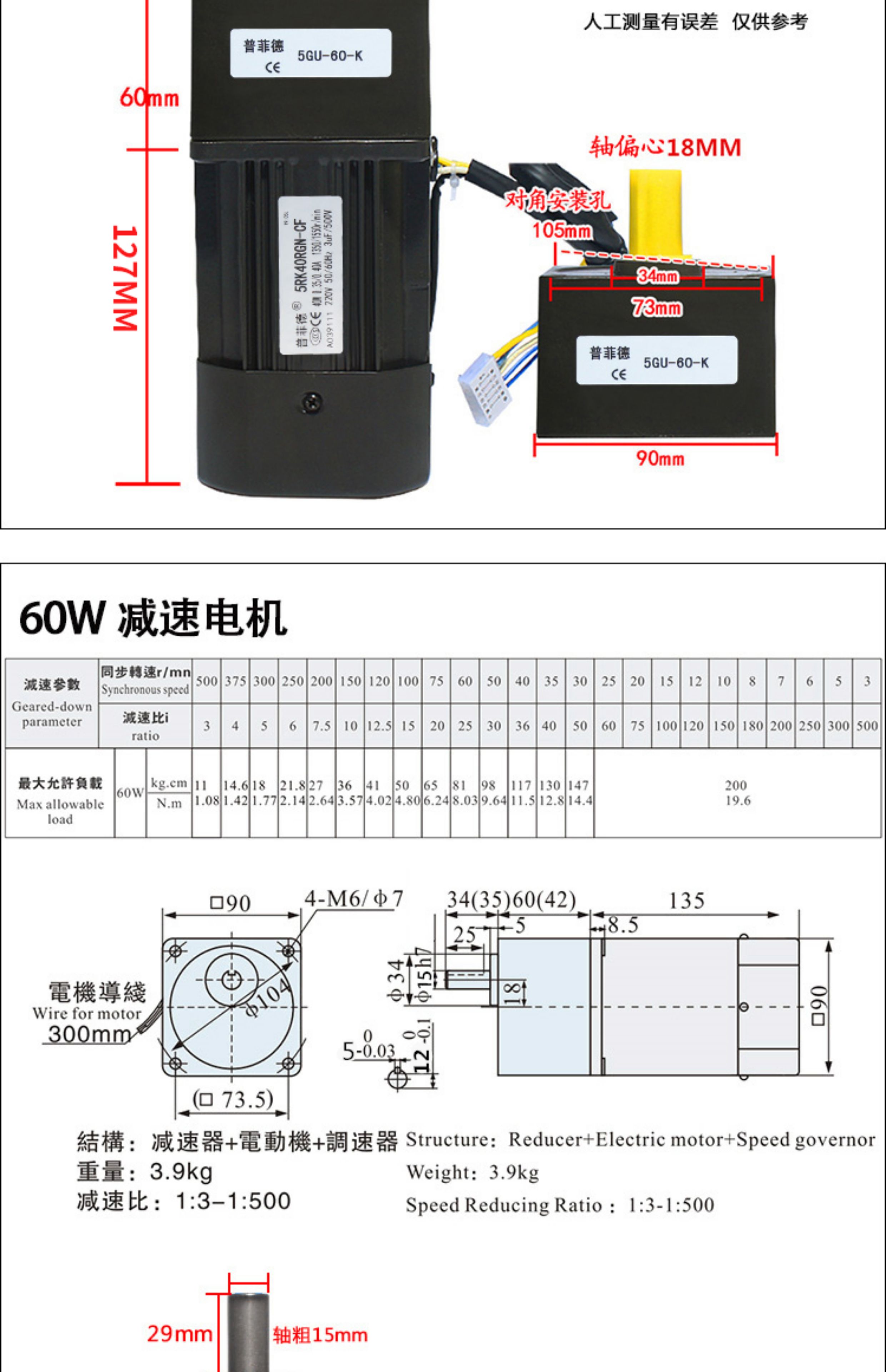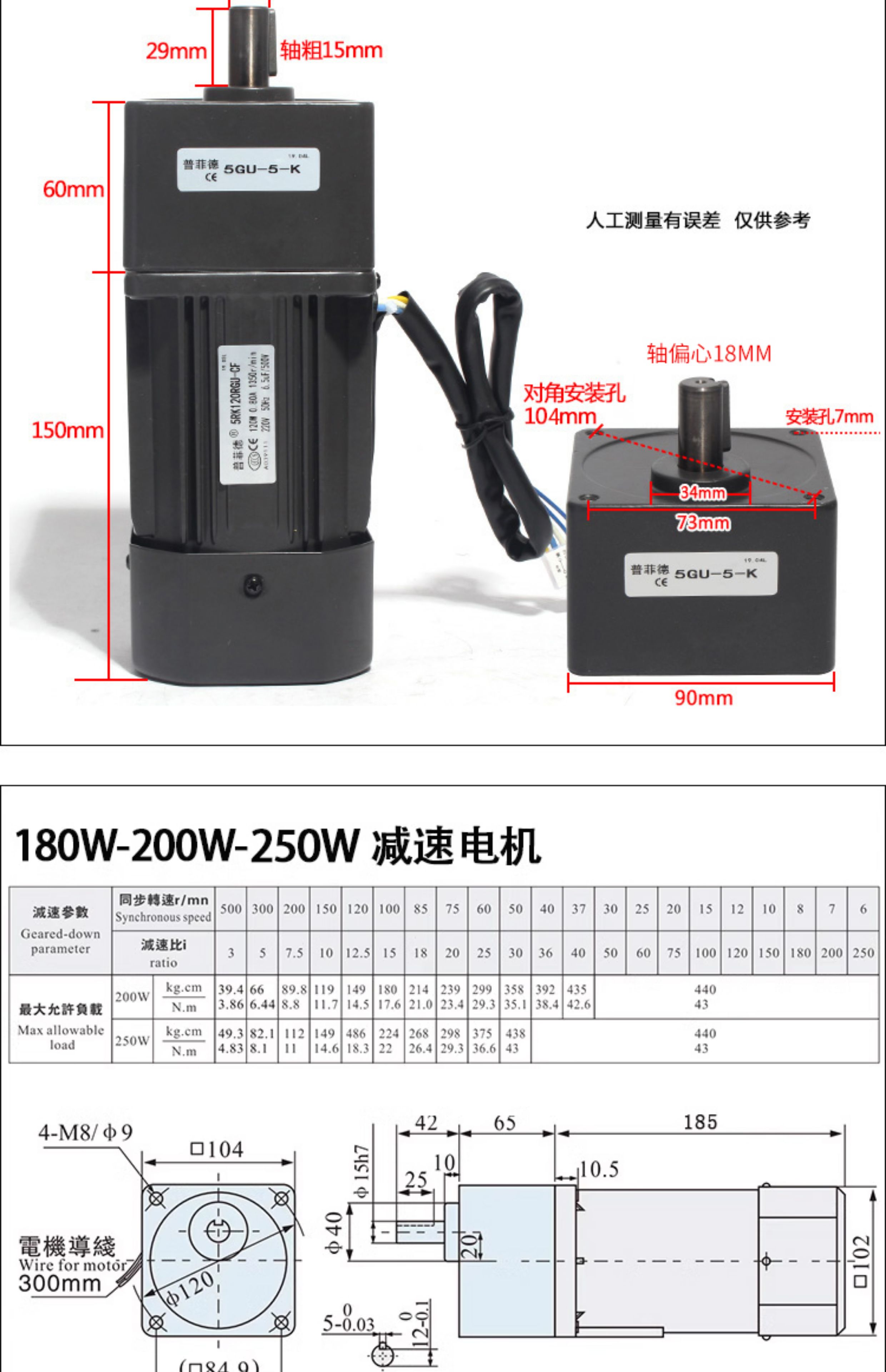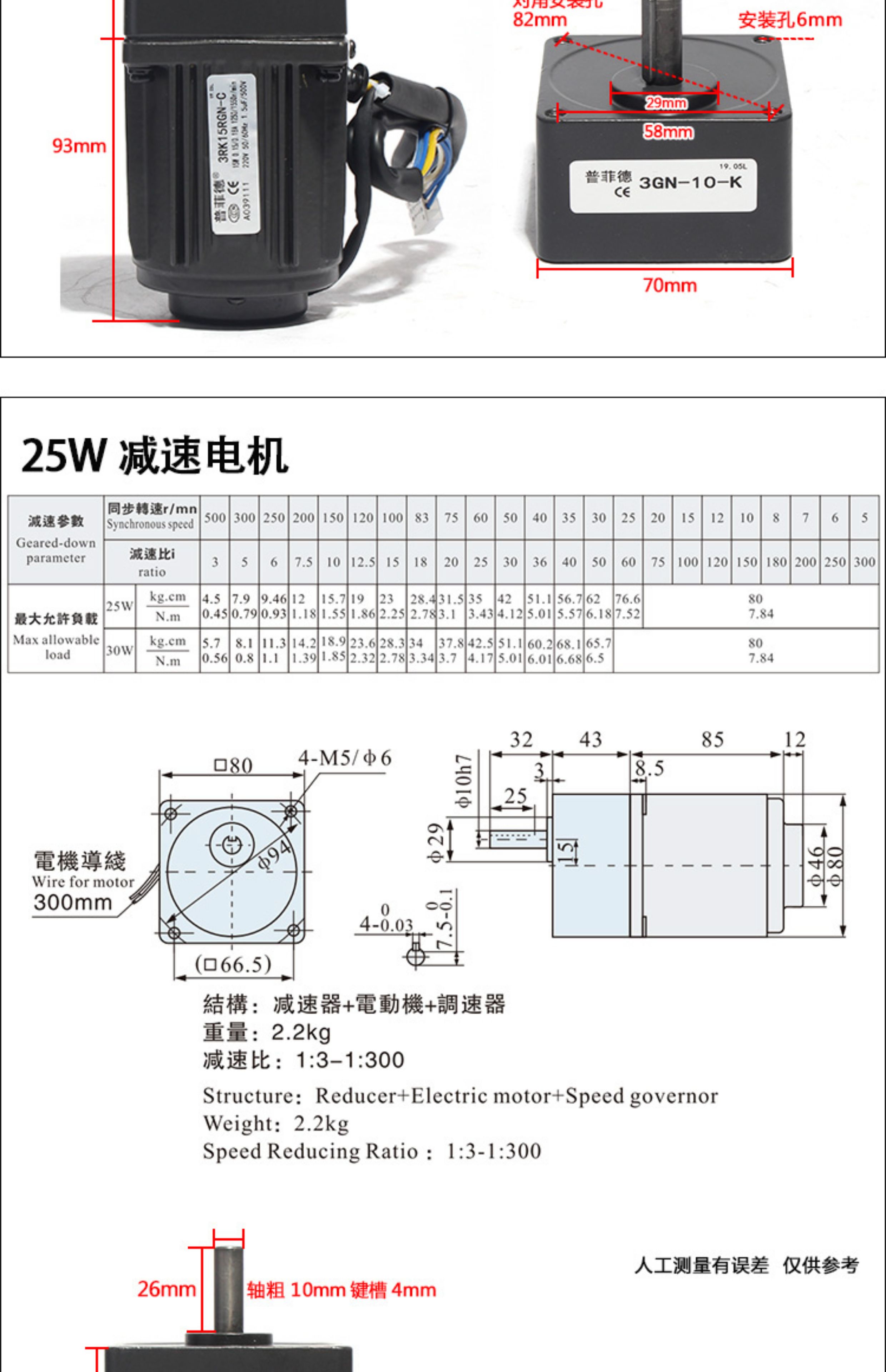 調速モータ6/15/25/40/60/90/120w/250w交流歯車減速モータ220v