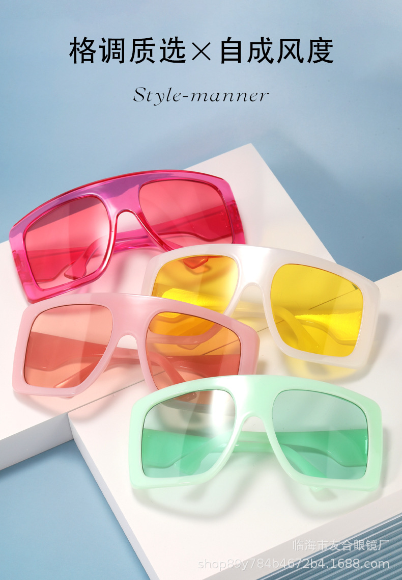 新型のアーチ型の鏡面の大きい枠の男女のサングラスのゼリー色の欧米の潮流のネットの赤いサングラスの越境する外国貿易のメガネ