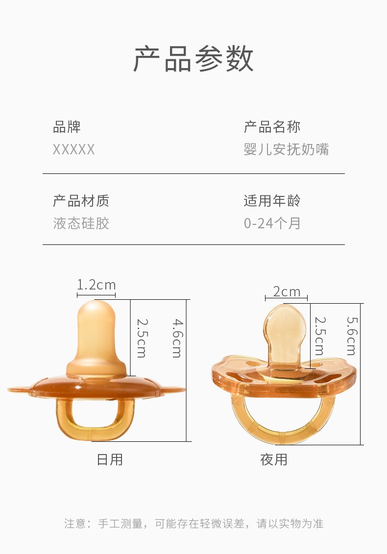婴儿安抚奶嘴日夜两用液态硅胶安抚奶嘴 宝宝安睡型奶嘴防龅牙哄