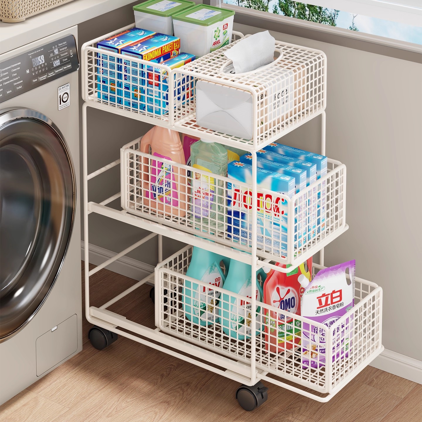 洗衣机侧面置物架夹缝洗衣液收纳柜阳台卫生间多层小推车窄款架子