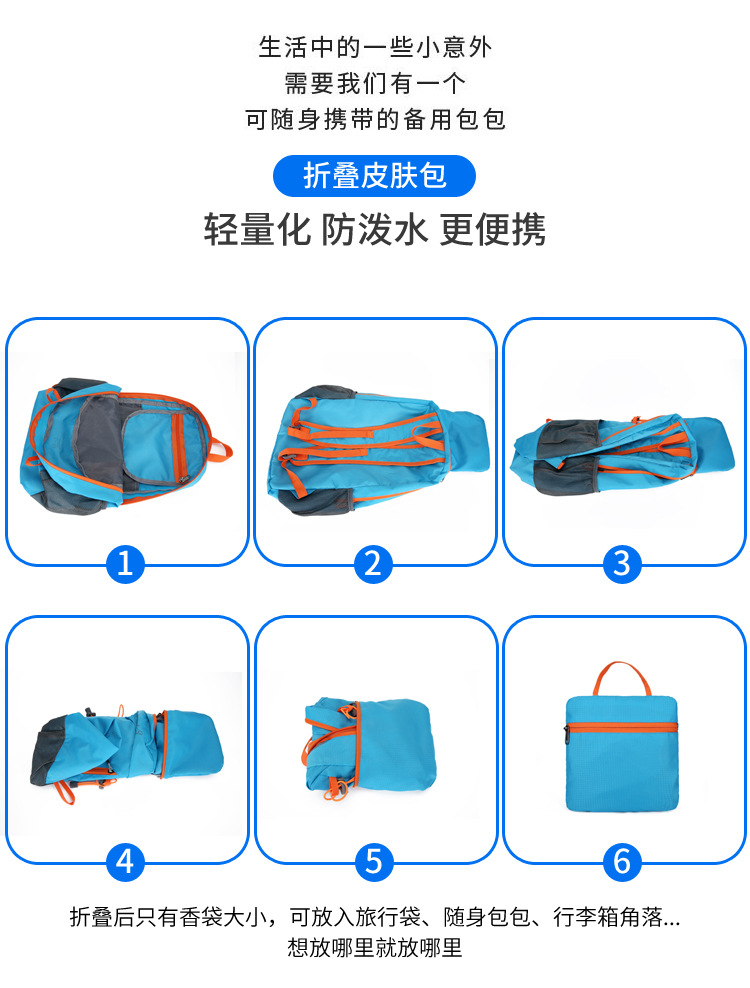 クロスボーダー新型アウトドアスポーツ超軽量スキンバッグ折りたたみ可能収納レジャー旅行ランドセル防水リュックサック