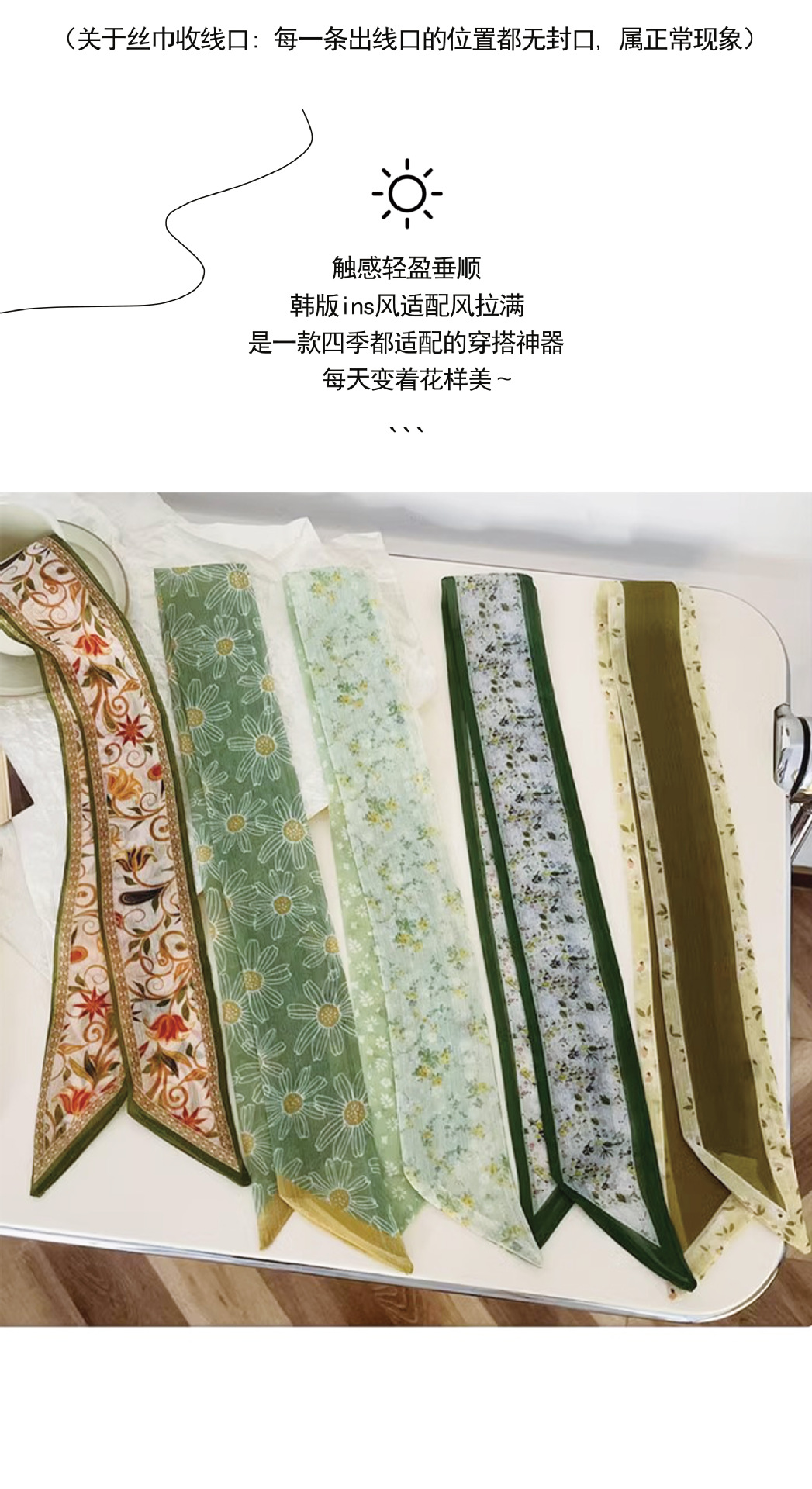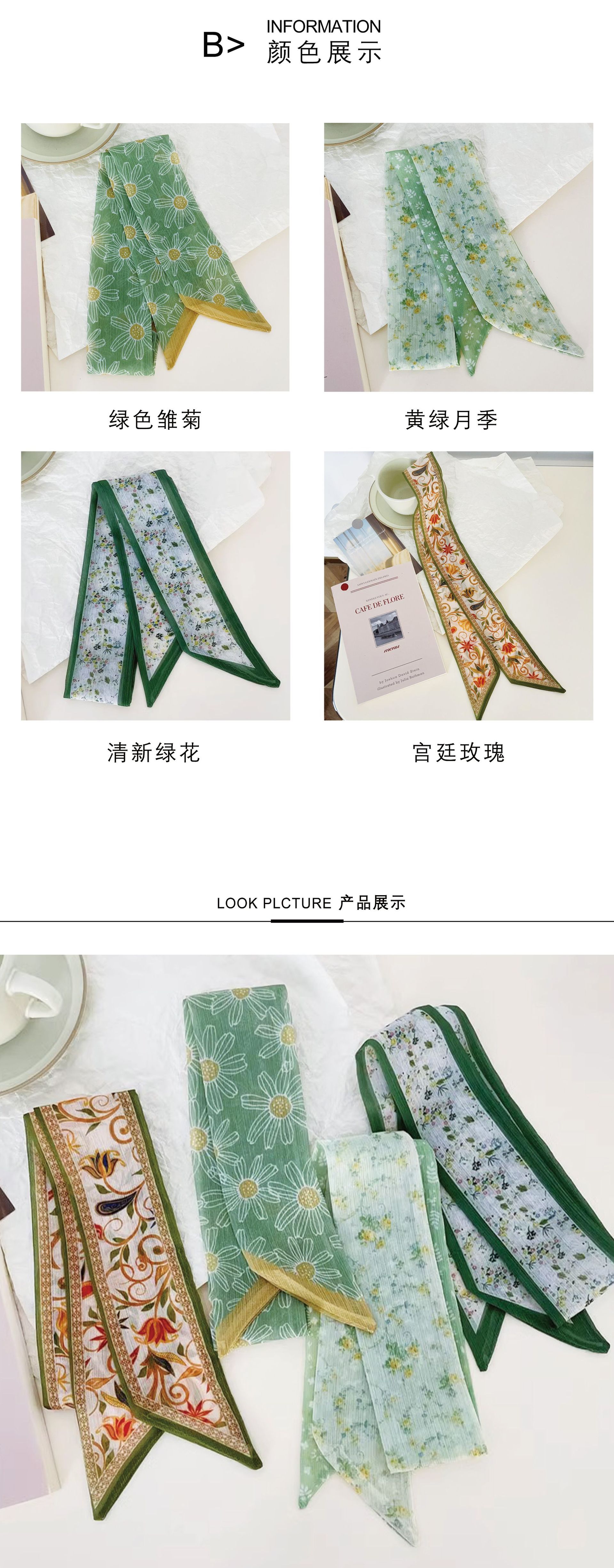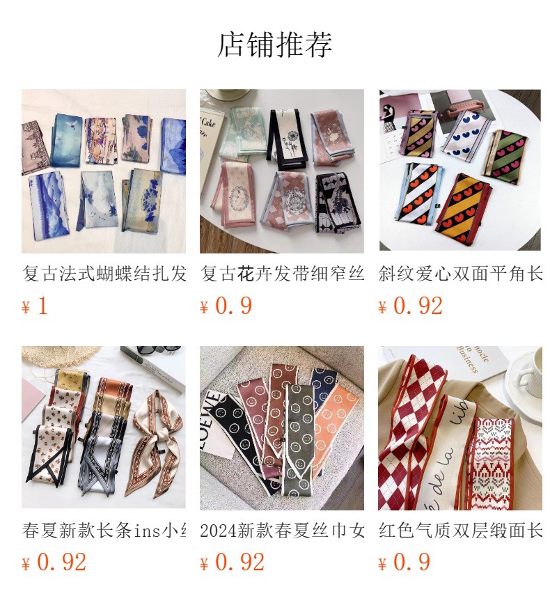 フレンチレトロ風花柄シルクスカーフ、新作多用途ネックタイ、バッグハンドル装飾、おしゃれなヘアバンド、リボンアクセサリー
