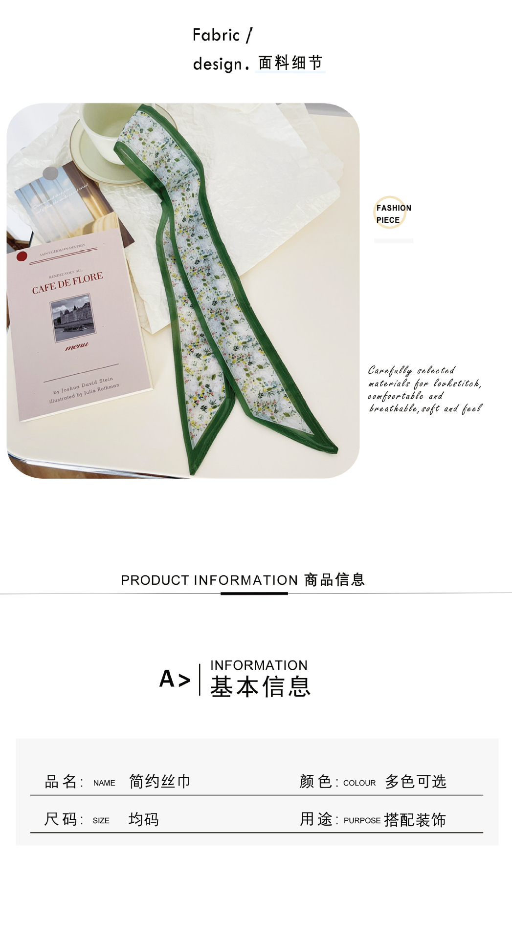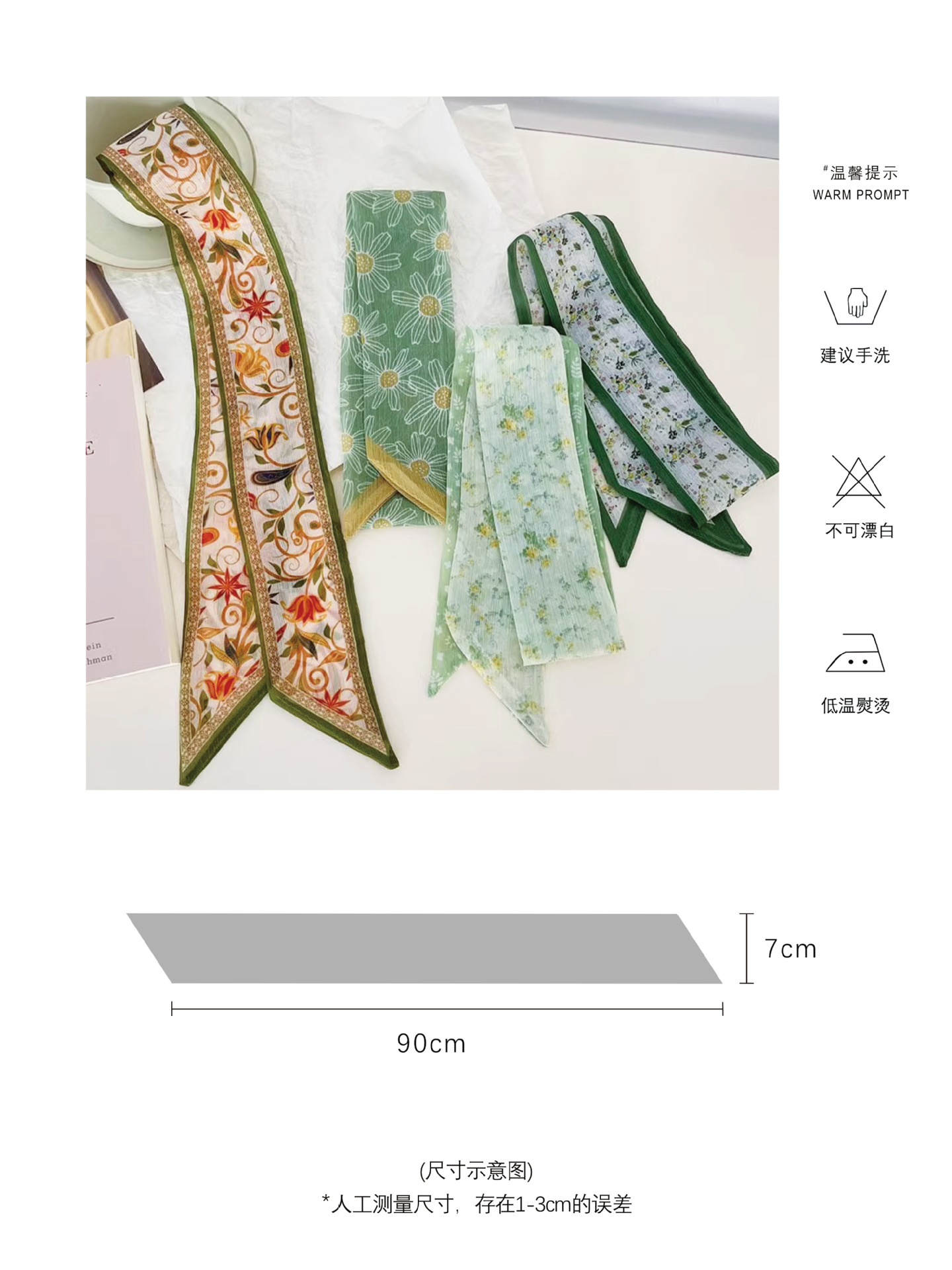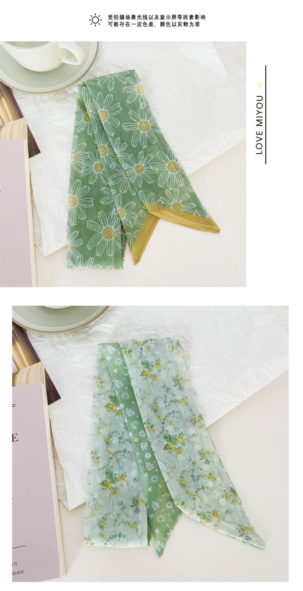フレンチレトロ風花柄シルクスカーフ、新作多用途ネックタイ、バッグハンドル装飾、おしゃれなヘアバンド、リボンアクセサリー