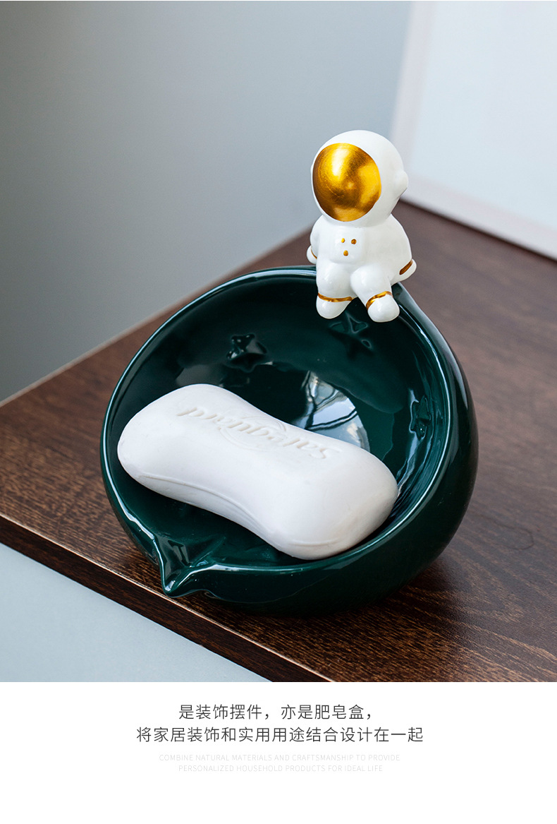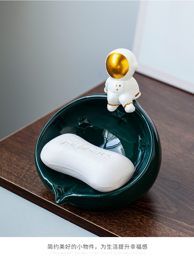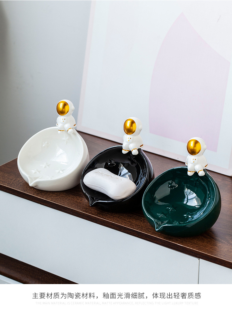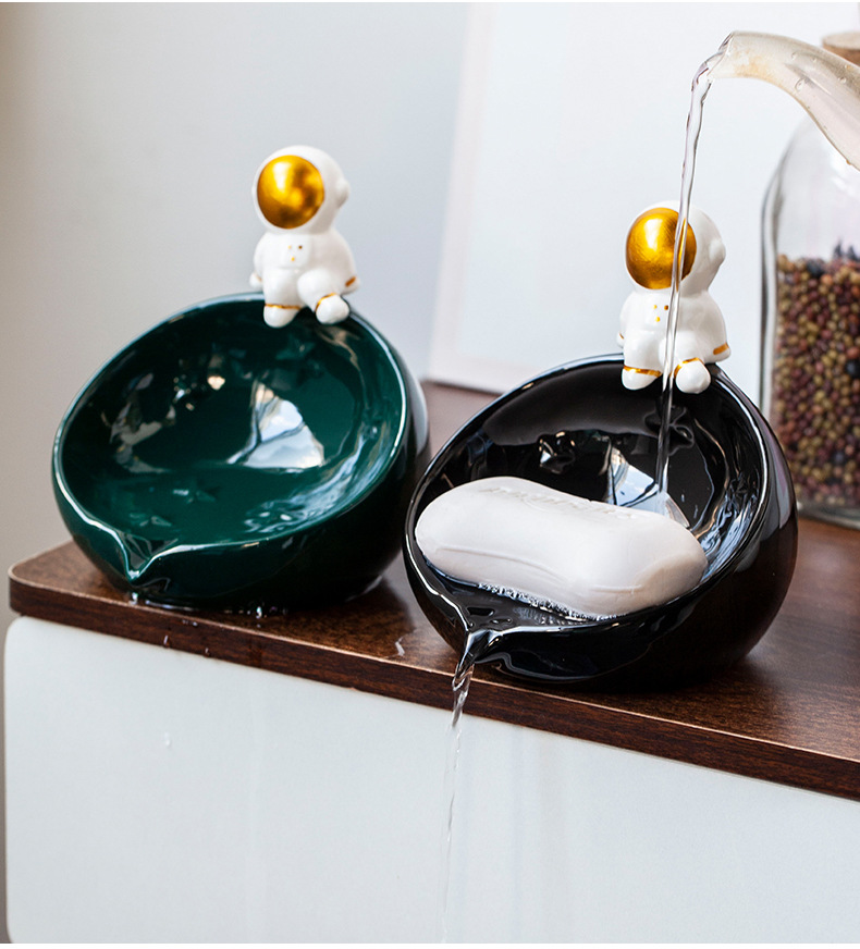 陶磁器の宇宙飛行士の石鹸の箱のアイデアのかわいいトイレの家庭用石鹸の皿は水が溜まっていません。