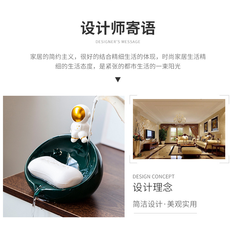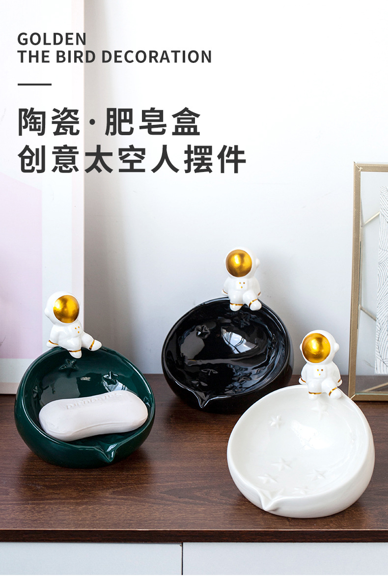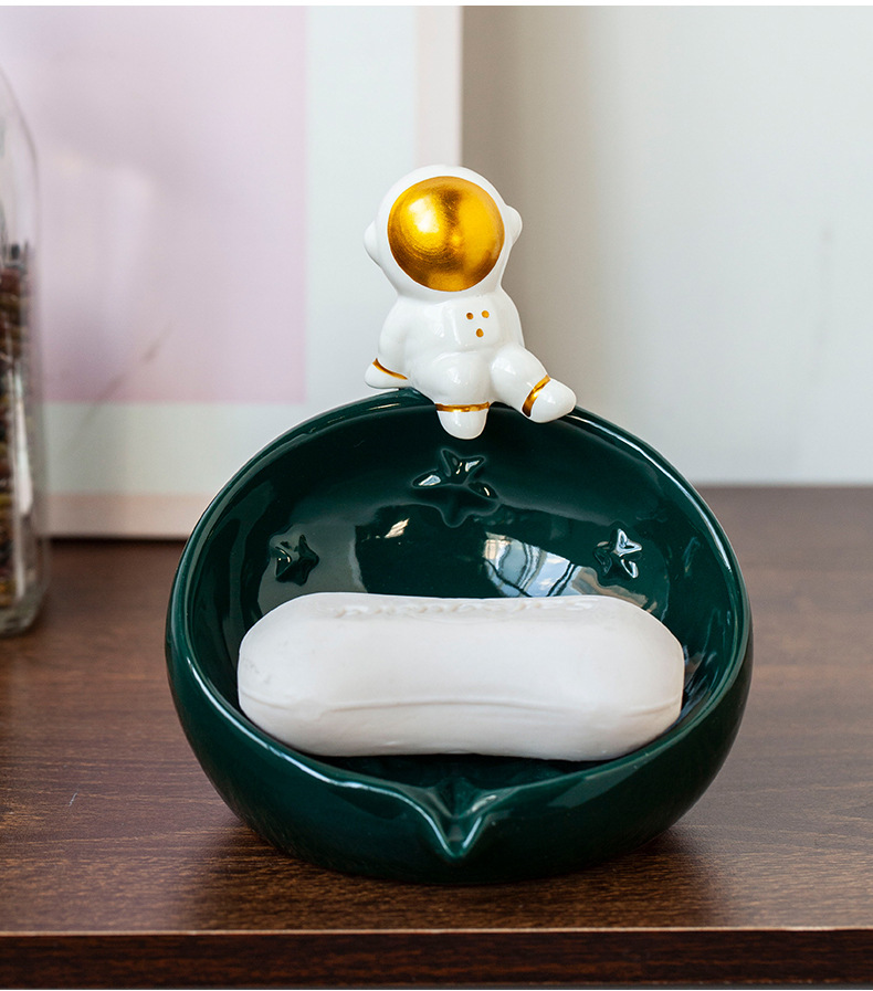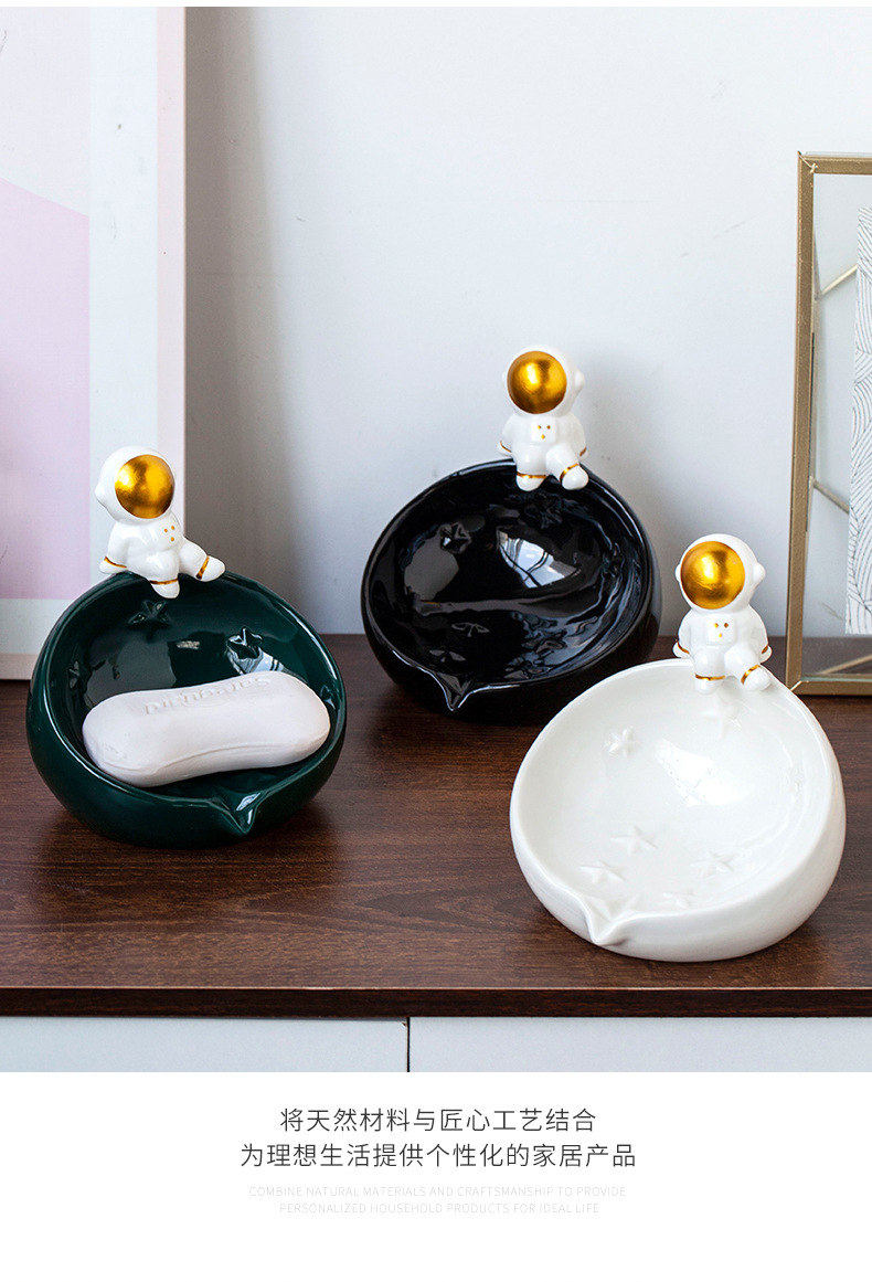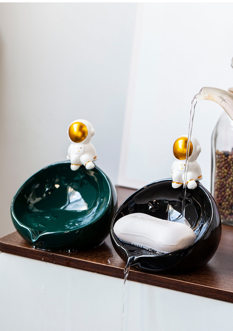 陶磁器の宇宙飛行士の石鹸の箱のアイデアのかわいいトイレの家庭用石鹸の皿は水が溜まっていません。