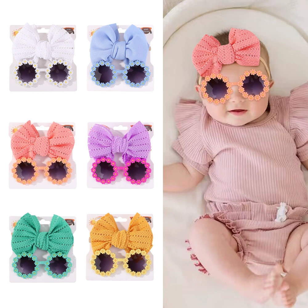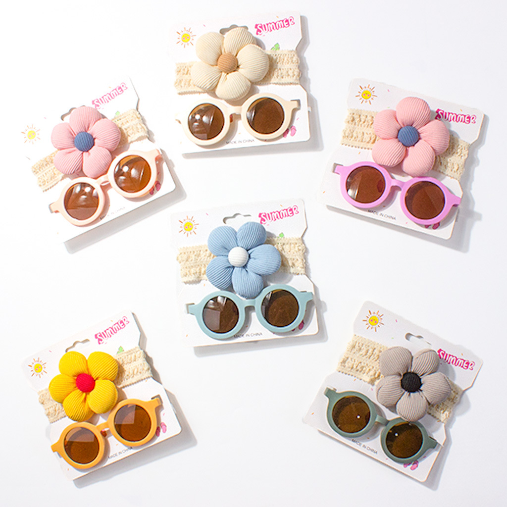 子供サングラス男女子供花ファッションセットメガネ輸出欧米赤ちゃんヘアバンドセットサングラスアクセサリー