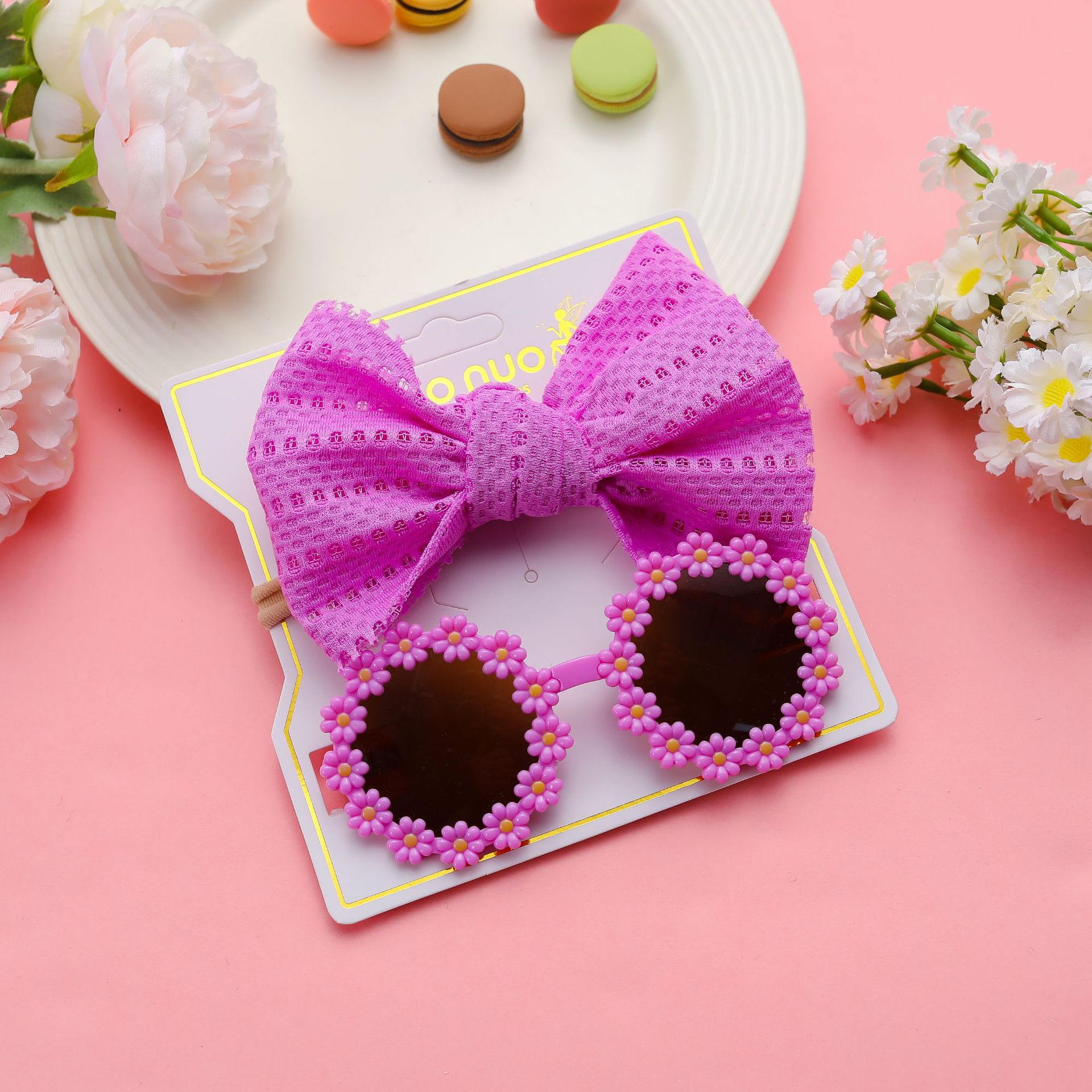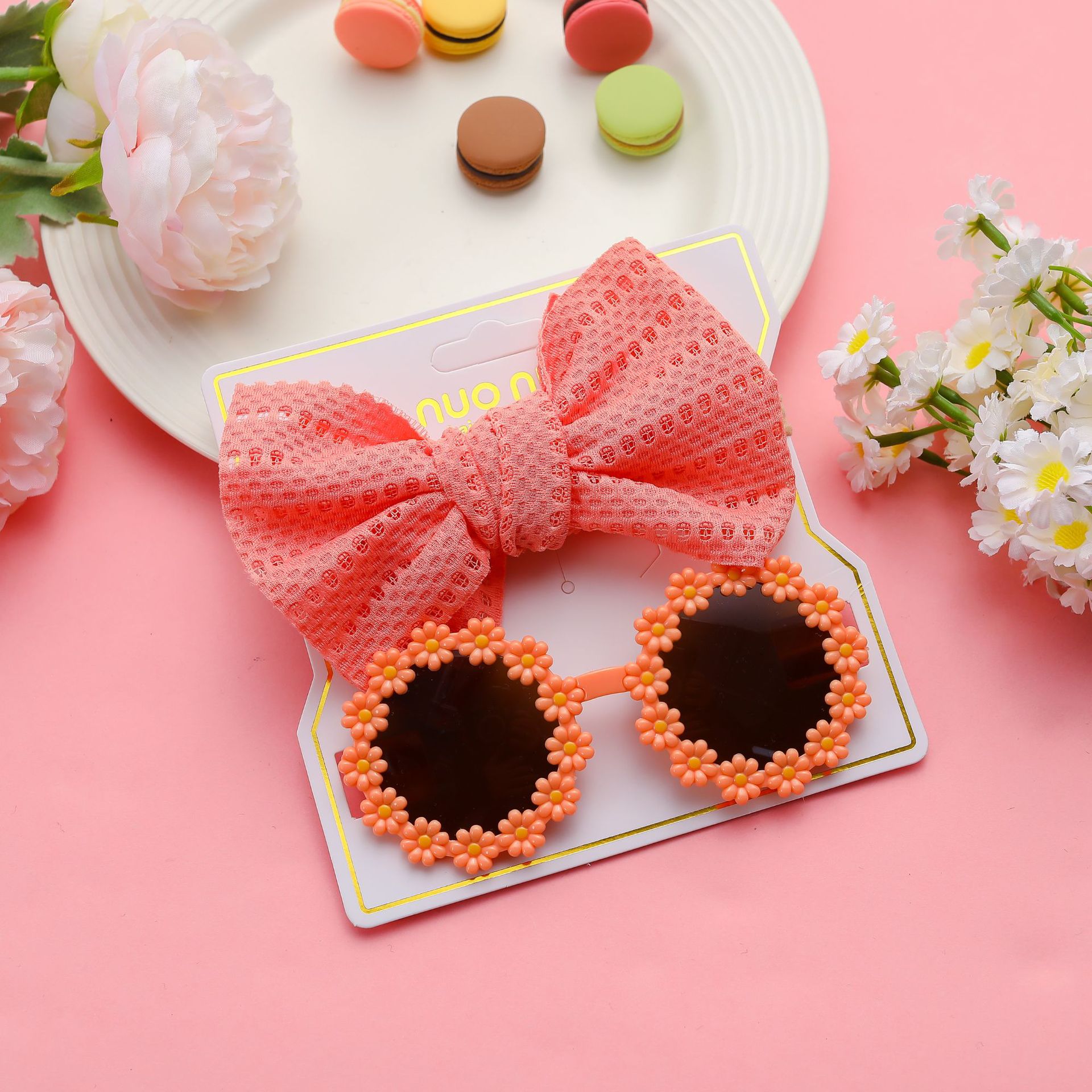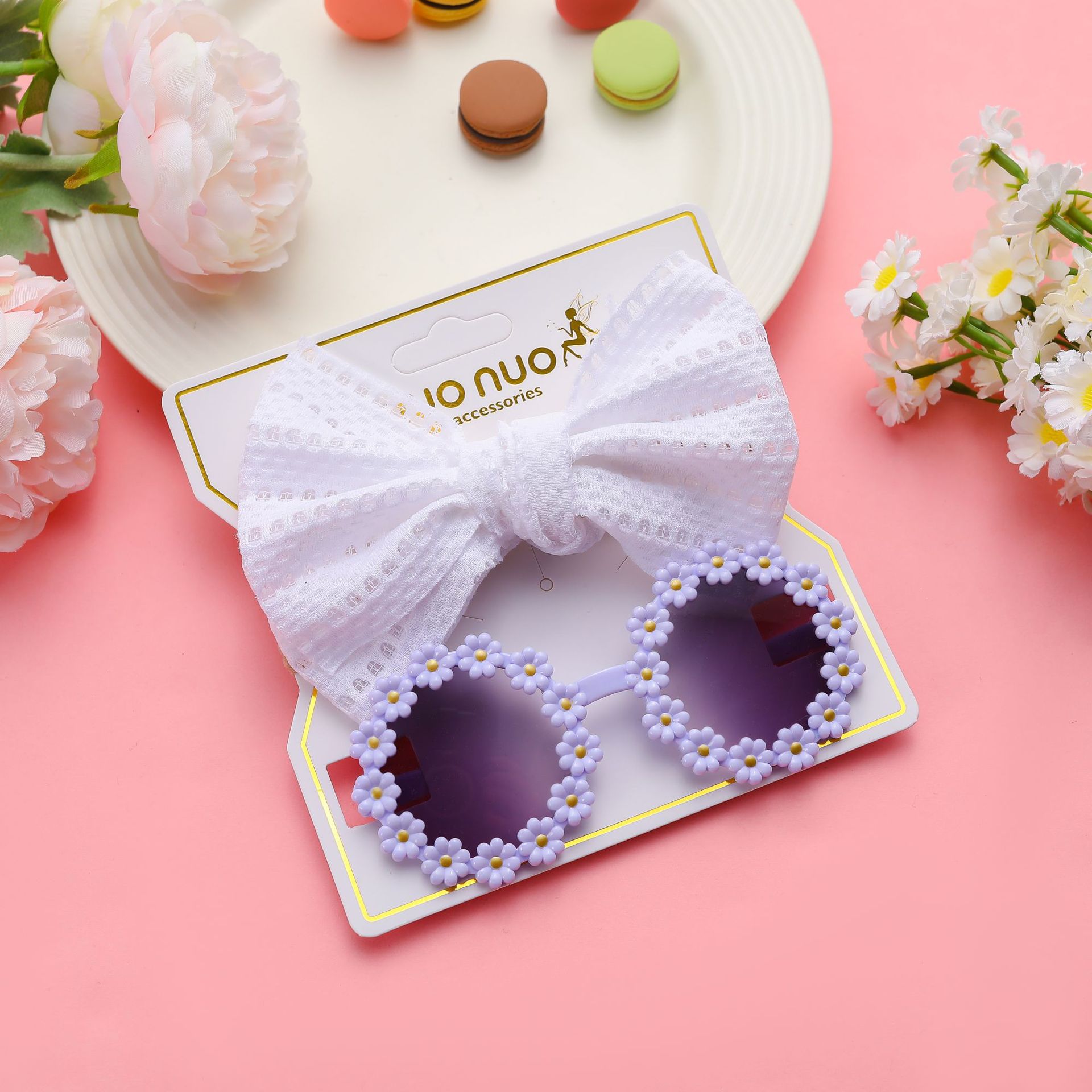 儿童墨镜花瓣太阳镜小萌系可爱雏菊圆框蝴蝶结发带派对装饰两件套