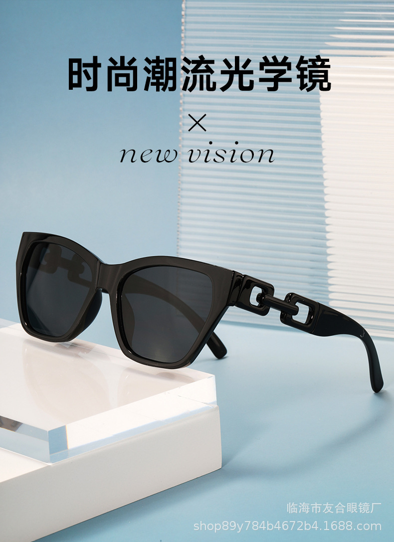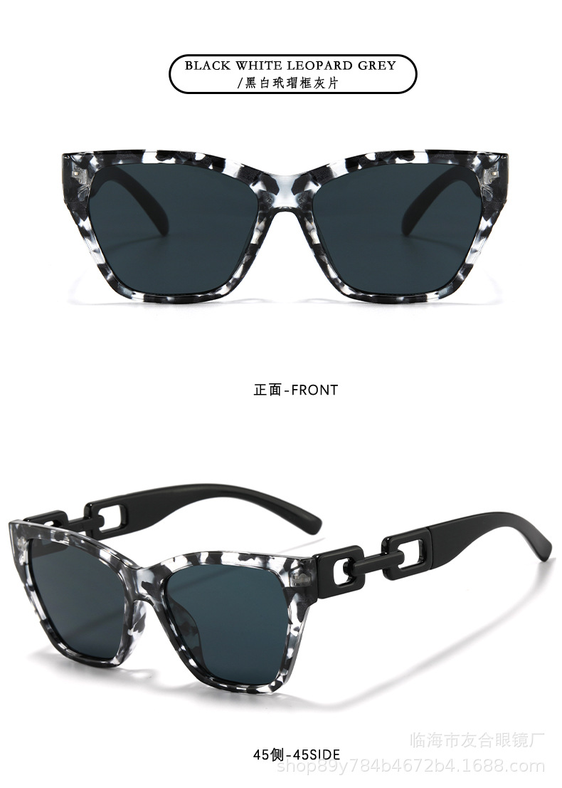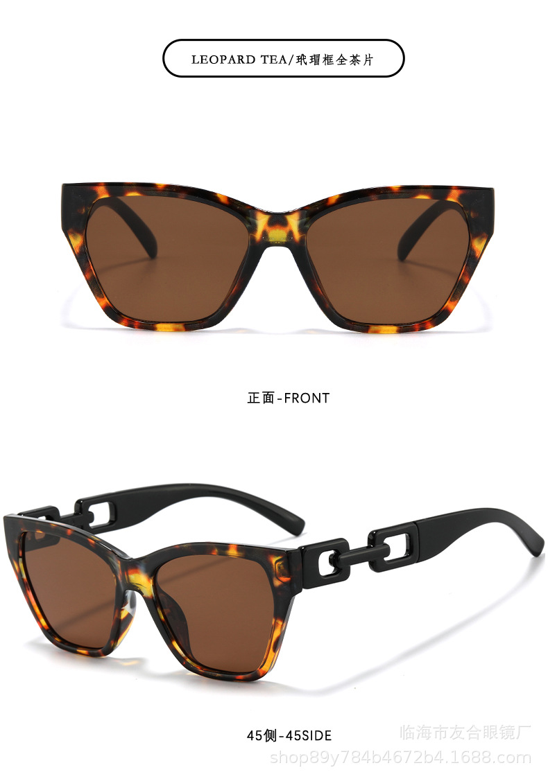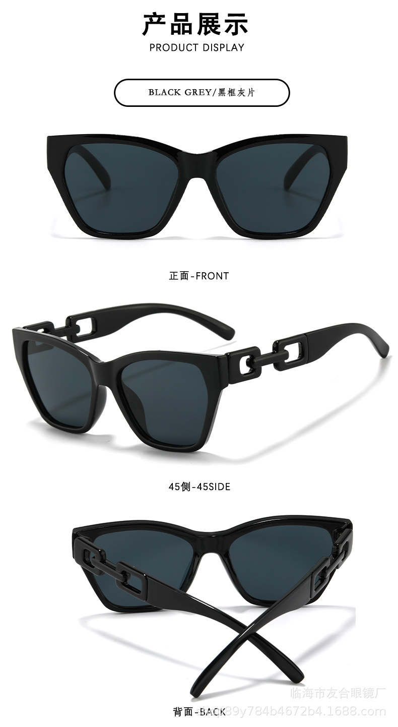 欧米の新型サングラスの男女ファッションファッションのファッションモデルの個性の日よけのサングラスの街の撮影の四角の枠の百合のチェーンの条項のメガネ