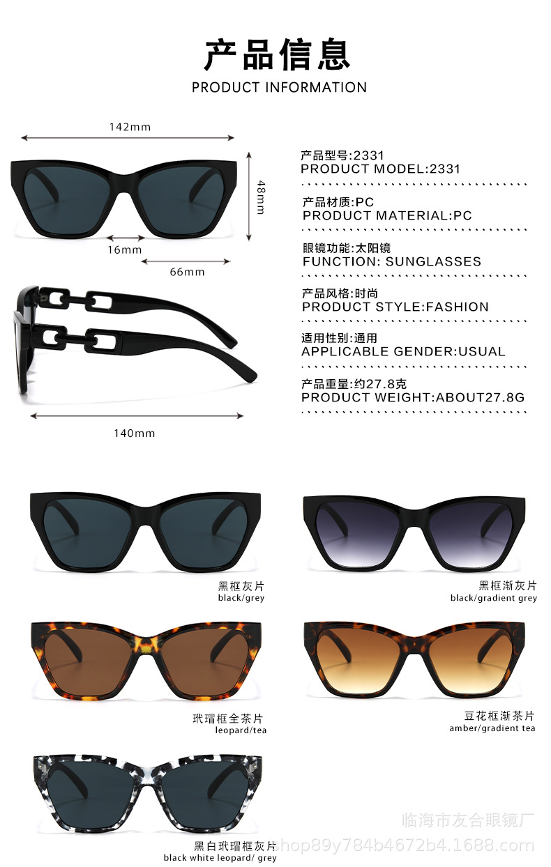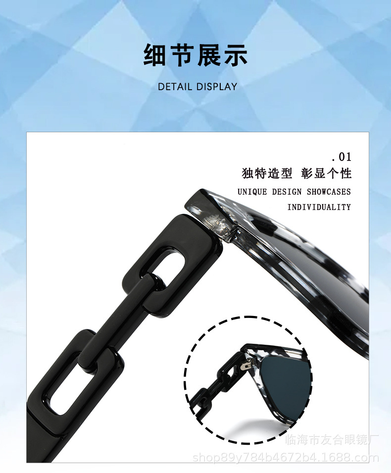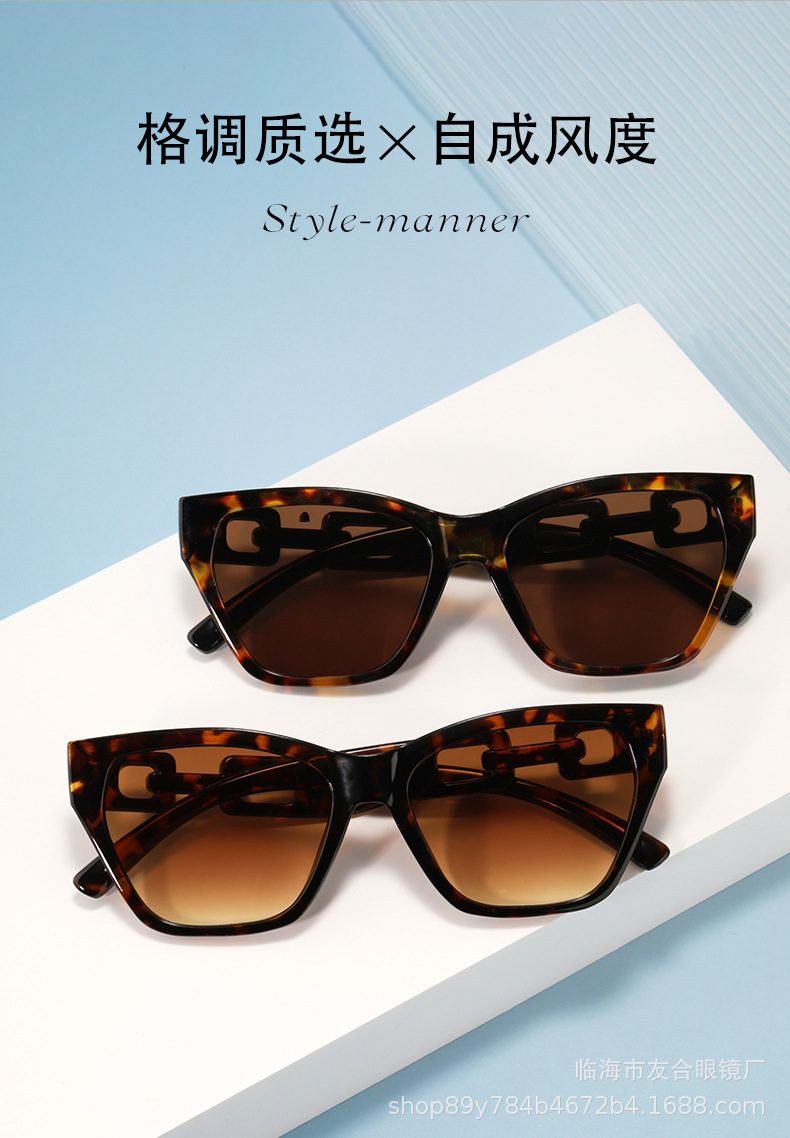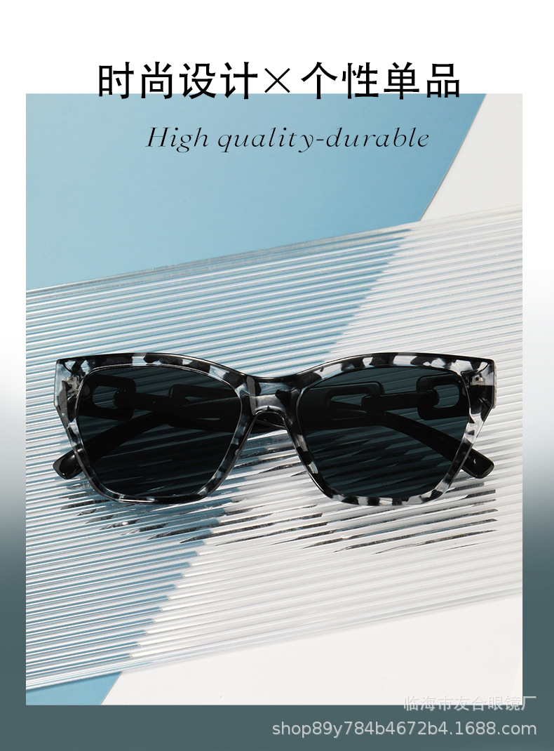 欧米の新型サングラスの男女ファッションファッションのファッションモデルの個性の日よけのサングラスの街の撮影の四角の枠の百合のチェーンの条項のメガネ