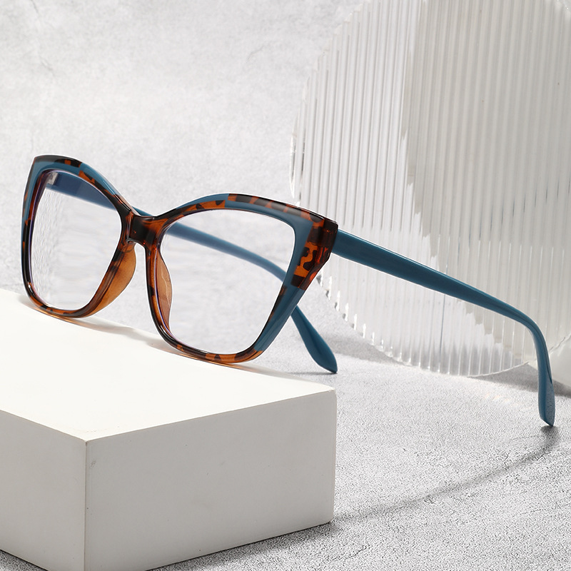 猫眼平光镜拼色防蓝光电脑镜个性素颜眼镜架跨境可配近视眼镜框女