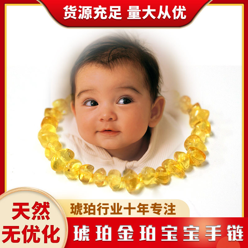 天然最適化なしバルト海琥珀金パー赤ちゃんブレスレット19cmシンプルな個性的な手串乳幼児アクセサリー