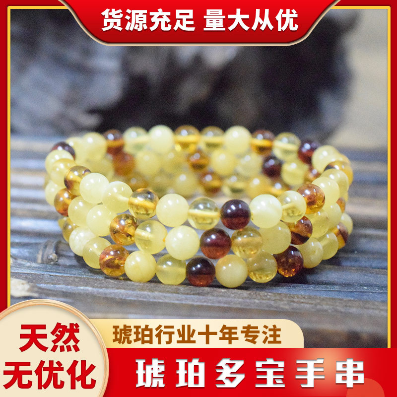 天然未加工バルト海産琥珀蜜蝋多宝丸玉ブレスレットチェーン金琥珀血琥珀花琥珀民族風