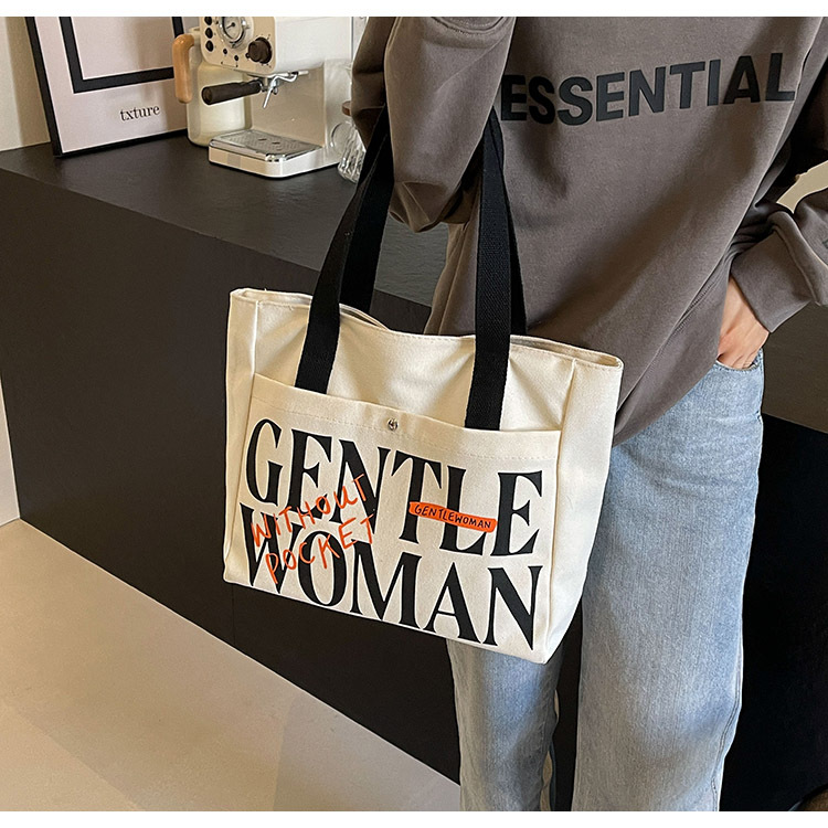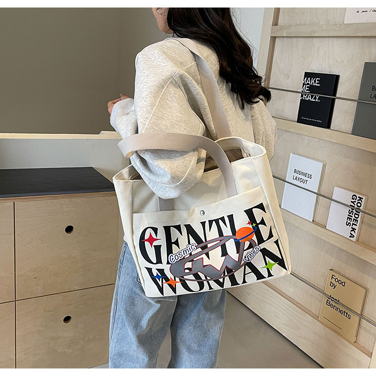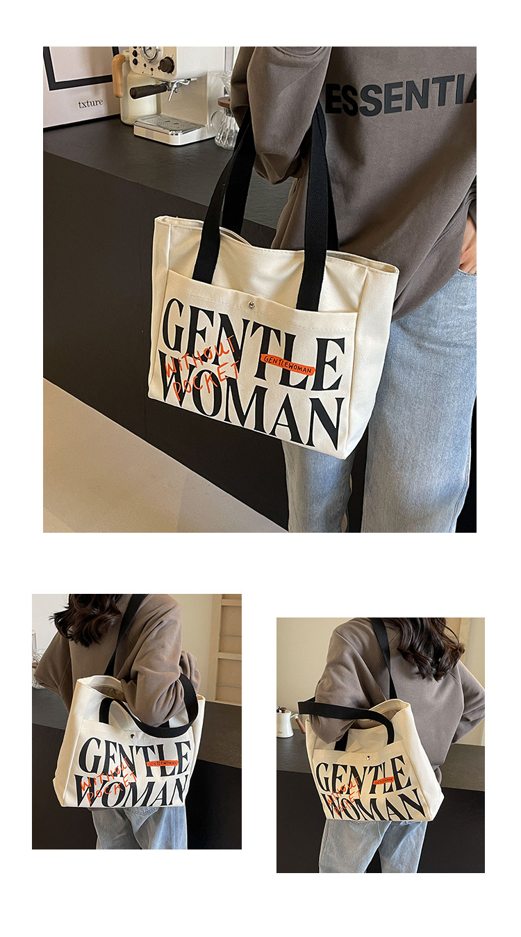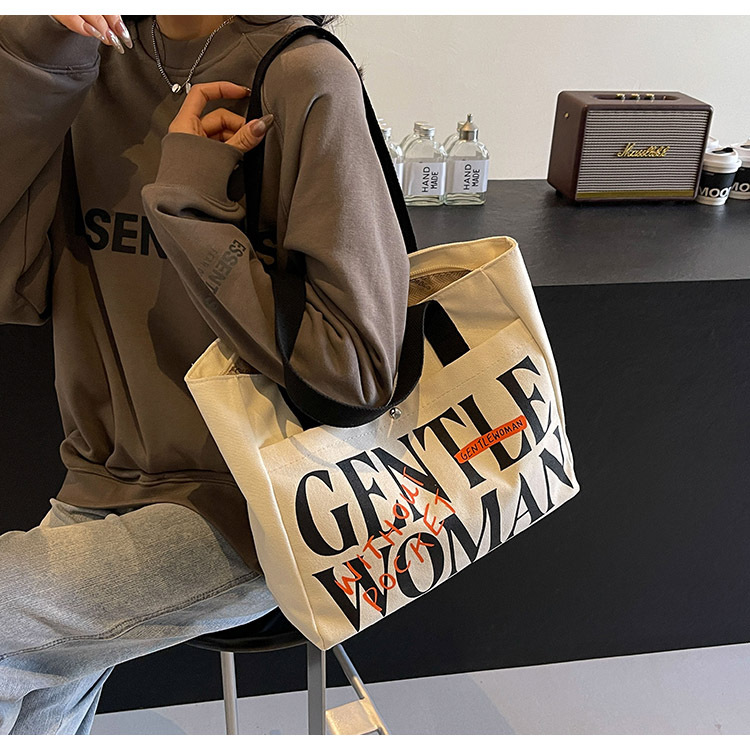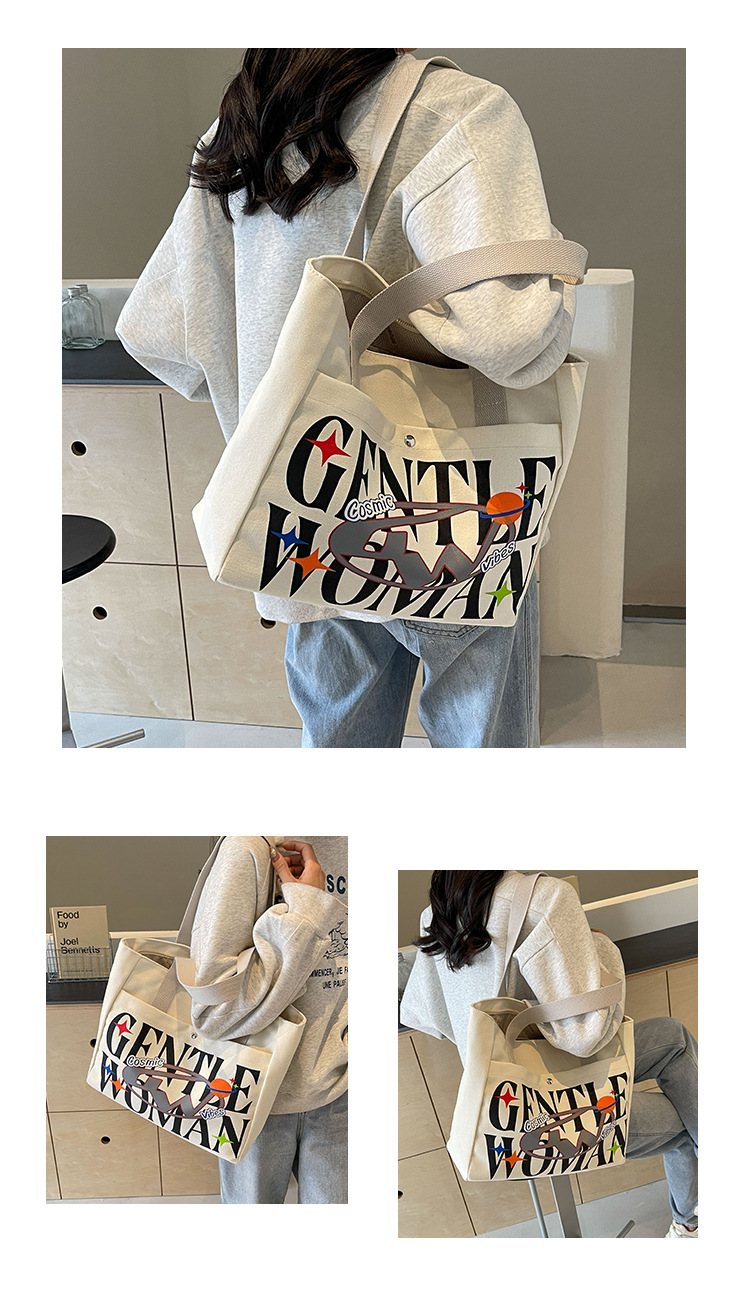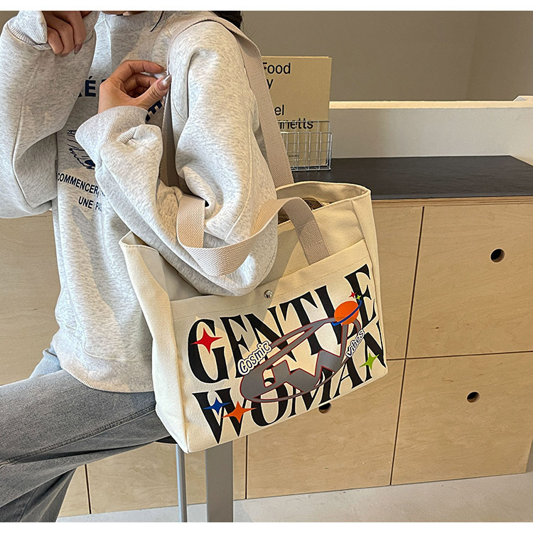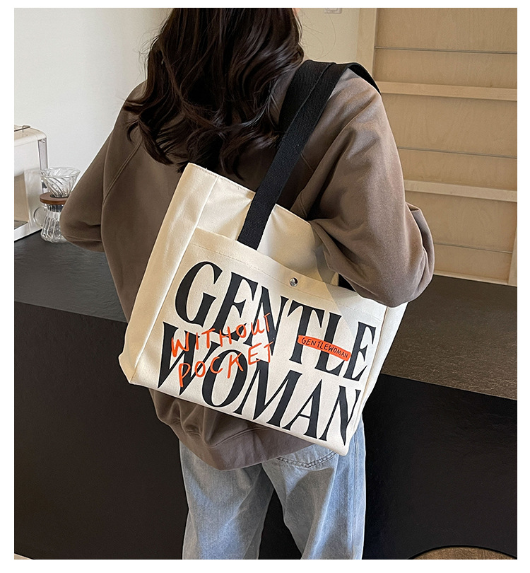 ファッションアルファベットプリントキャンバスバッグシンプルな文芸学生ショルダーバッグ大容量ショッピングバッグ