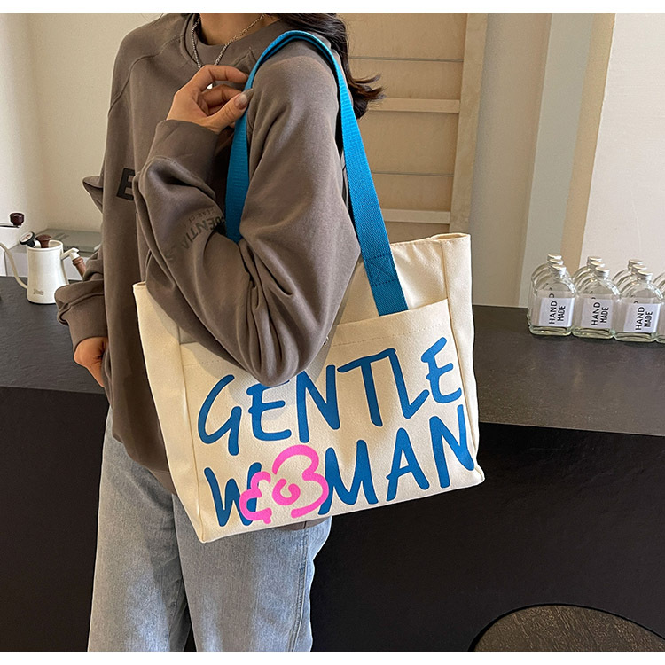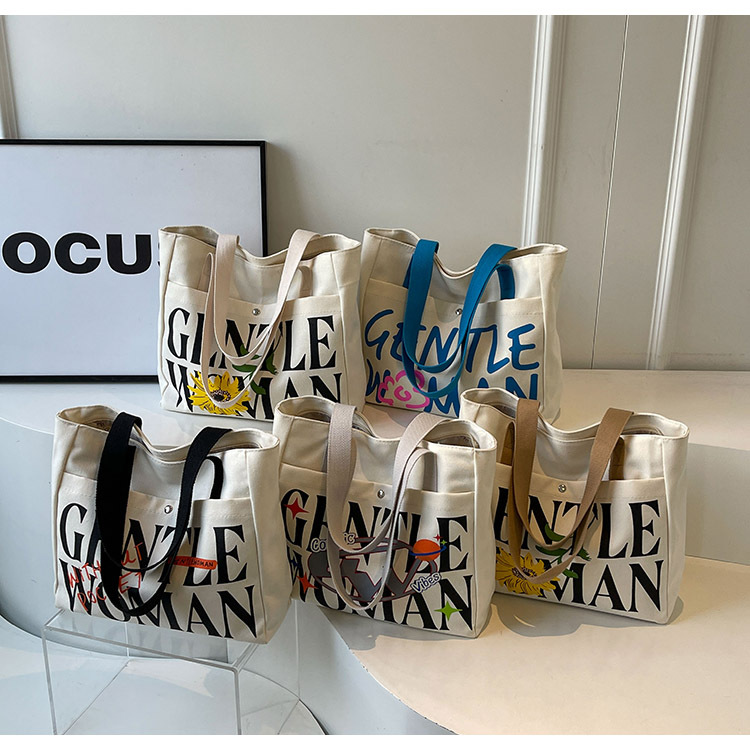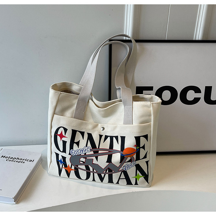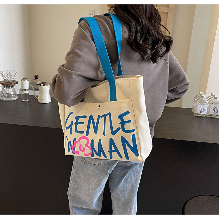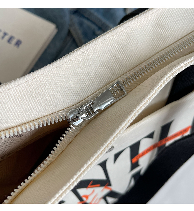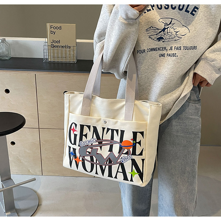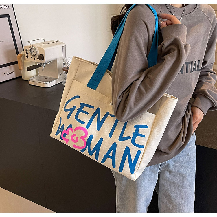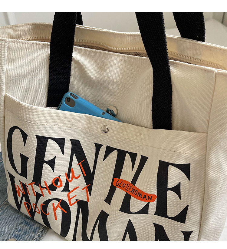ファッションアルファベットプリントキャンバスバッグシンプルな文芸学生ショルダーバッグ大容量ショッピングバッグ