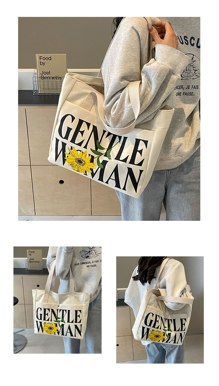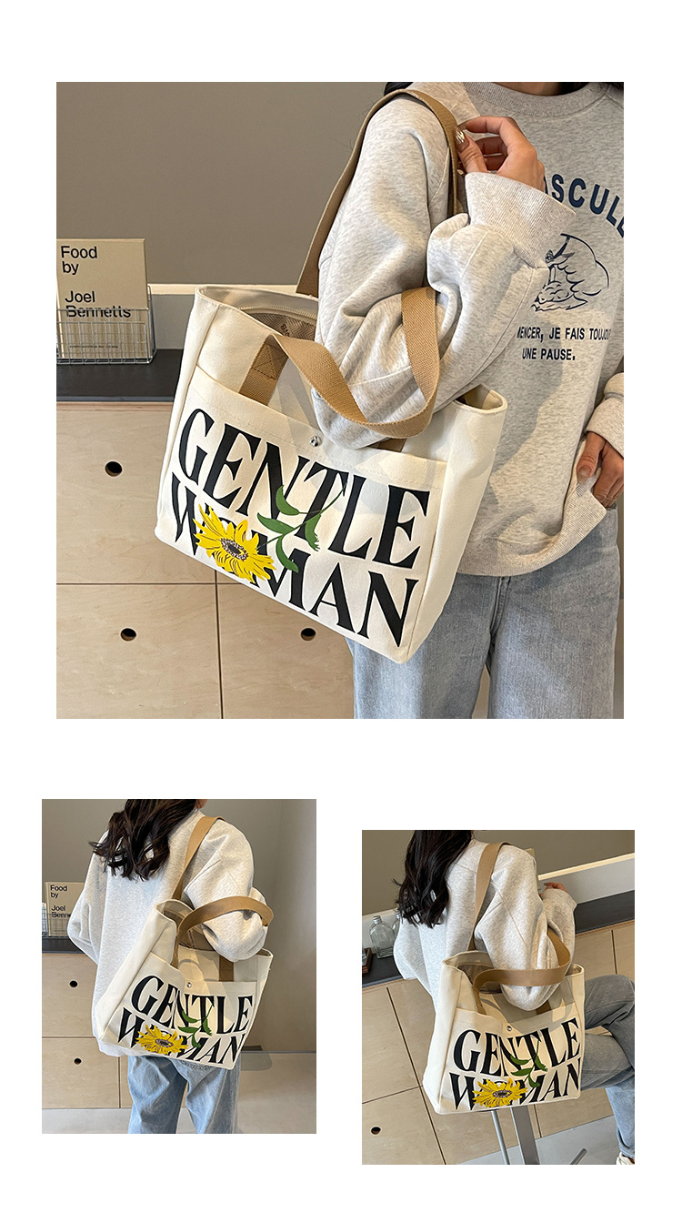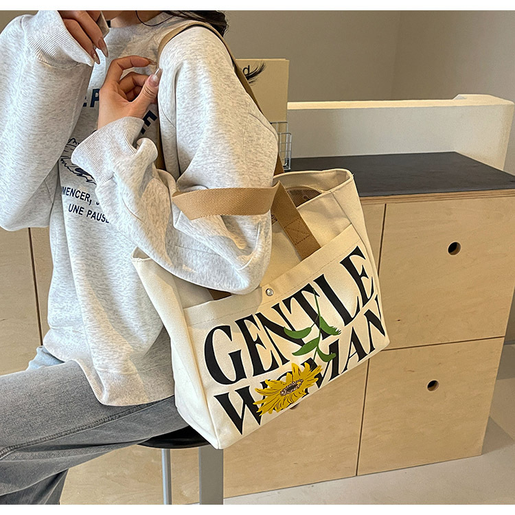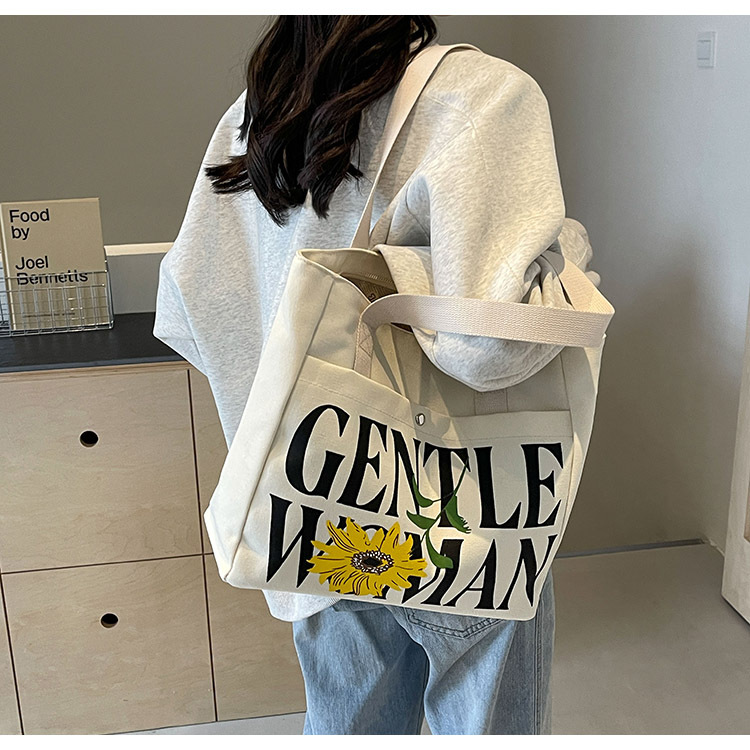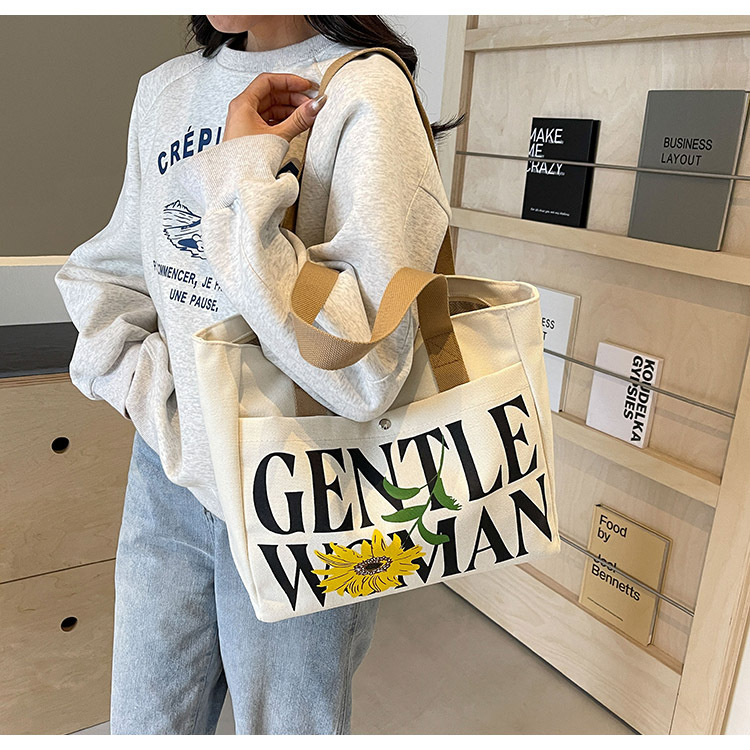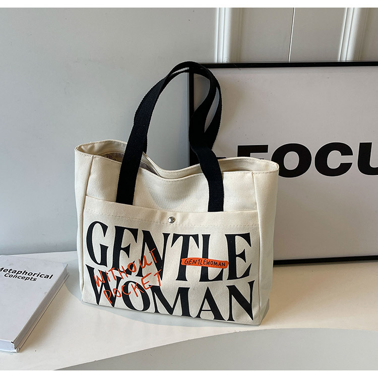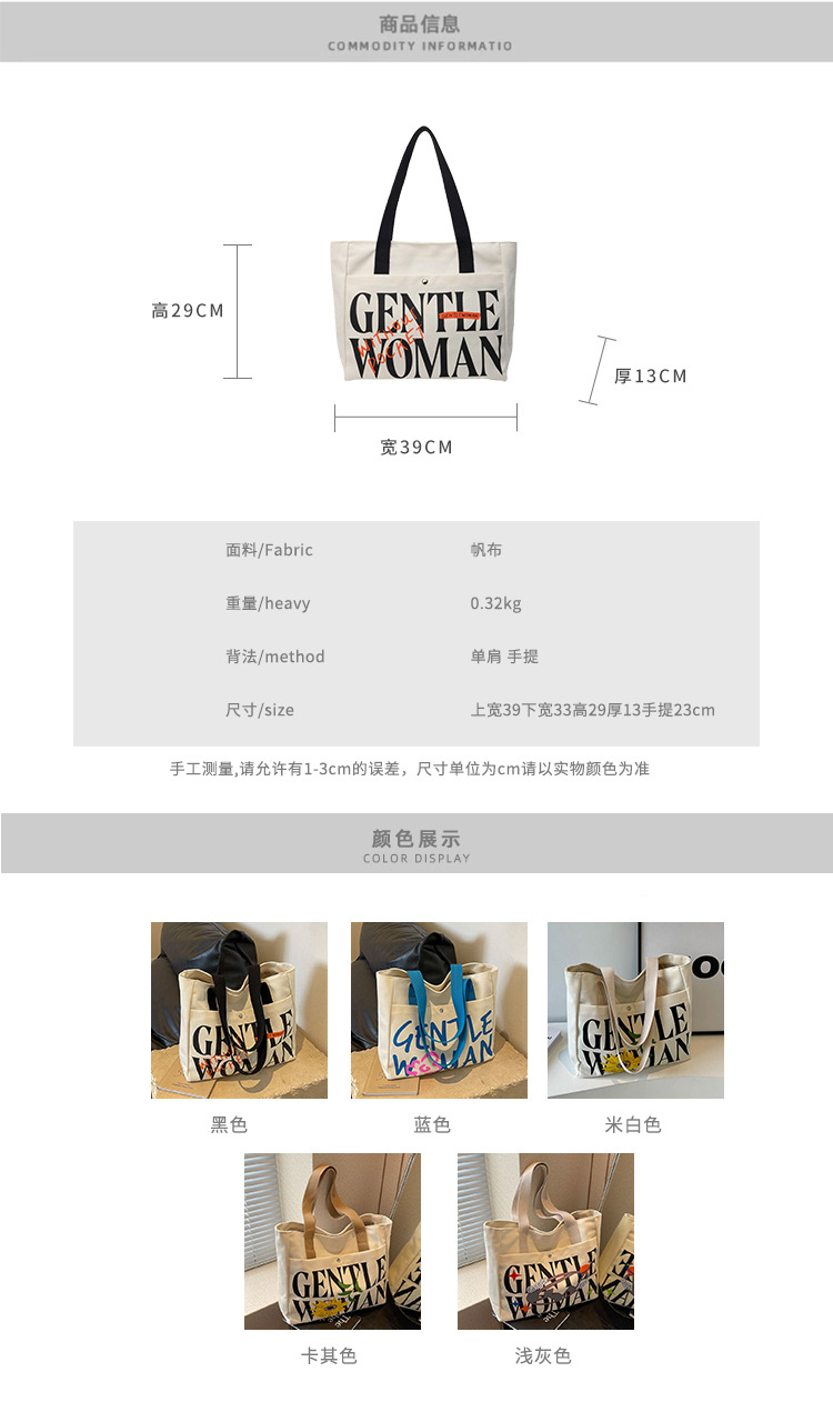 ファッションアルファベットプリントキャンバスバッグシンプルな文芸学生ショルダーバッグ大容量ショッピングバッグ