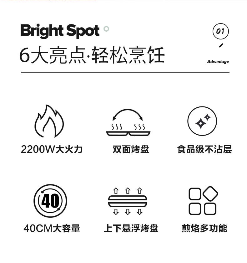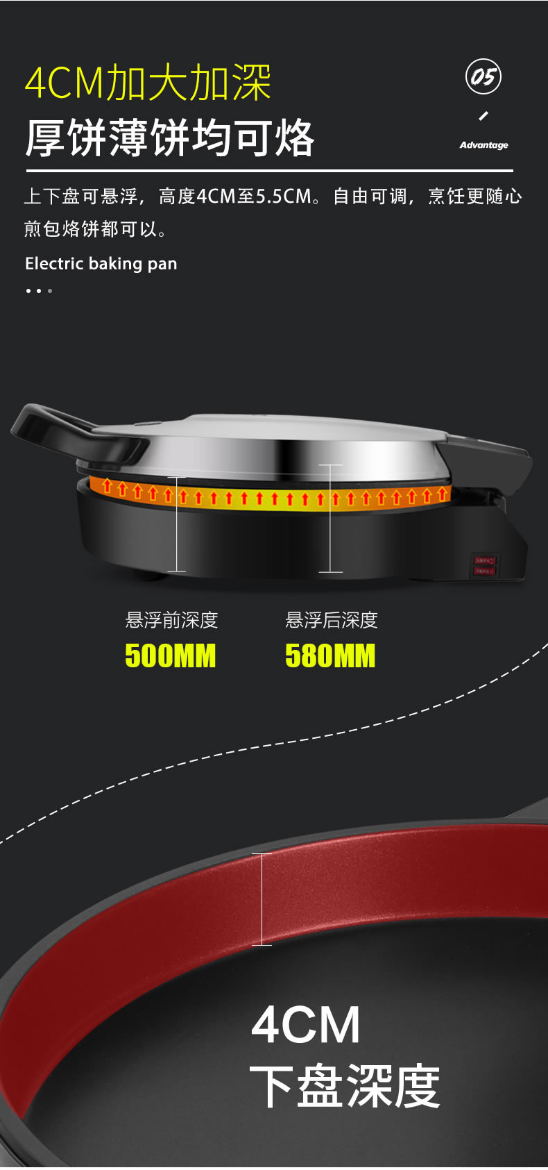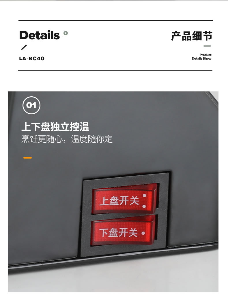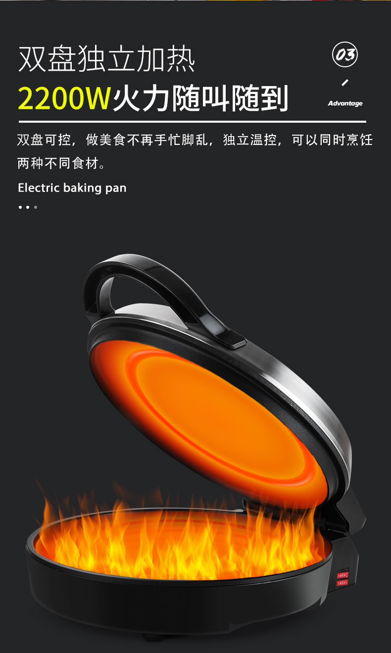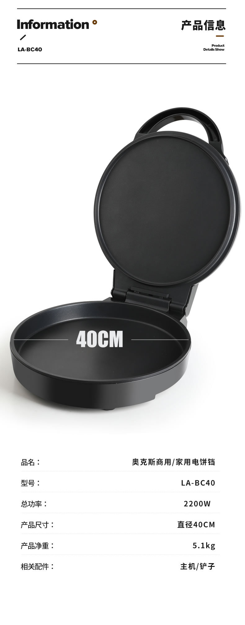 40CM大口径电饼铛家用商用双面加热加深不粘煎烤锅大功率智能控温