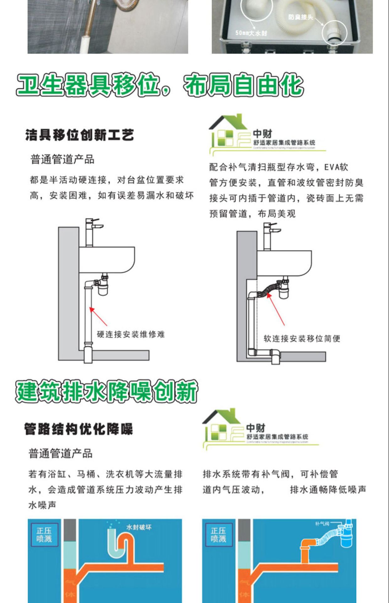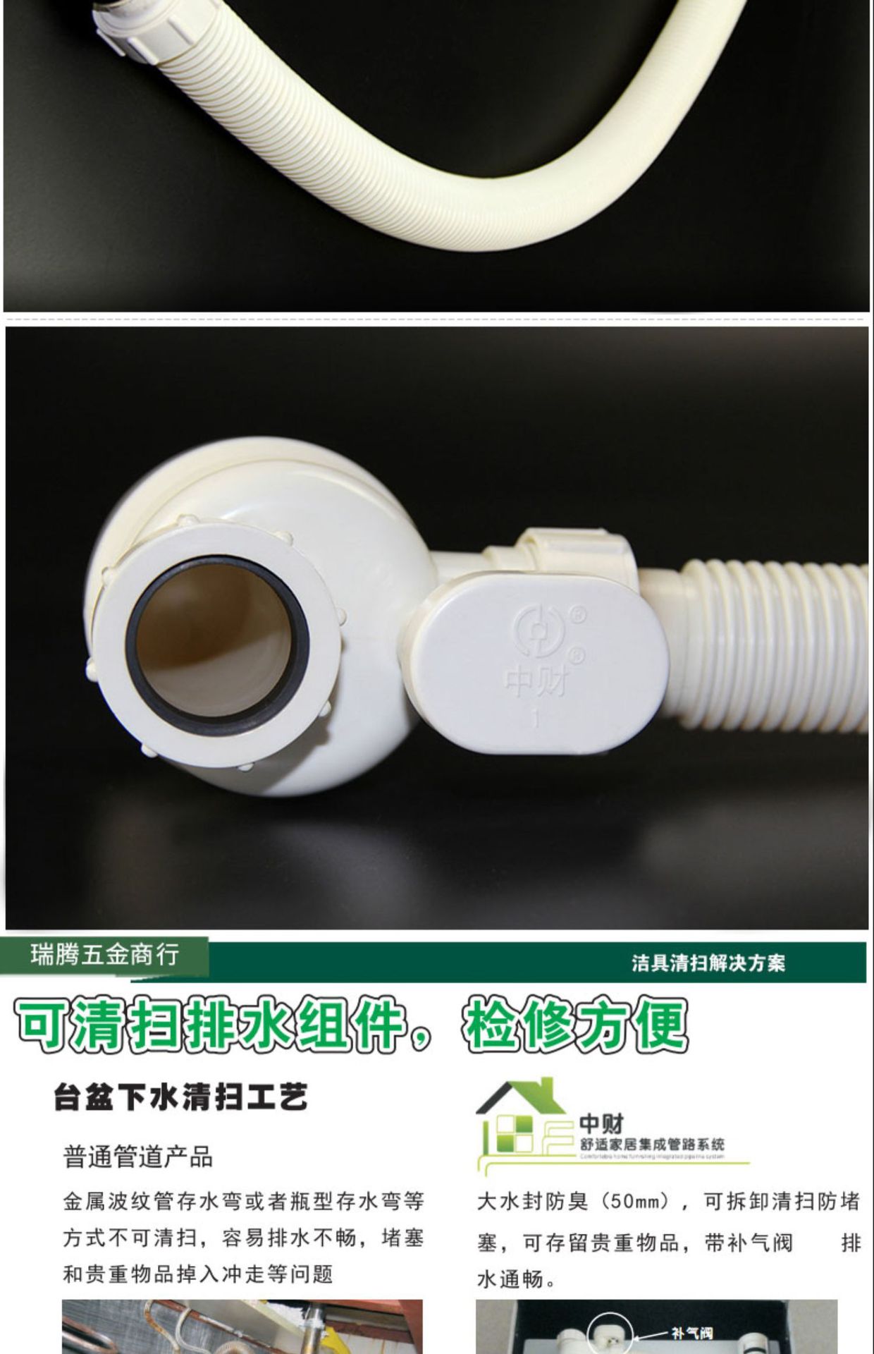中財PVC排水管下水管継手逆流防止ソリューションボトル型水封継手