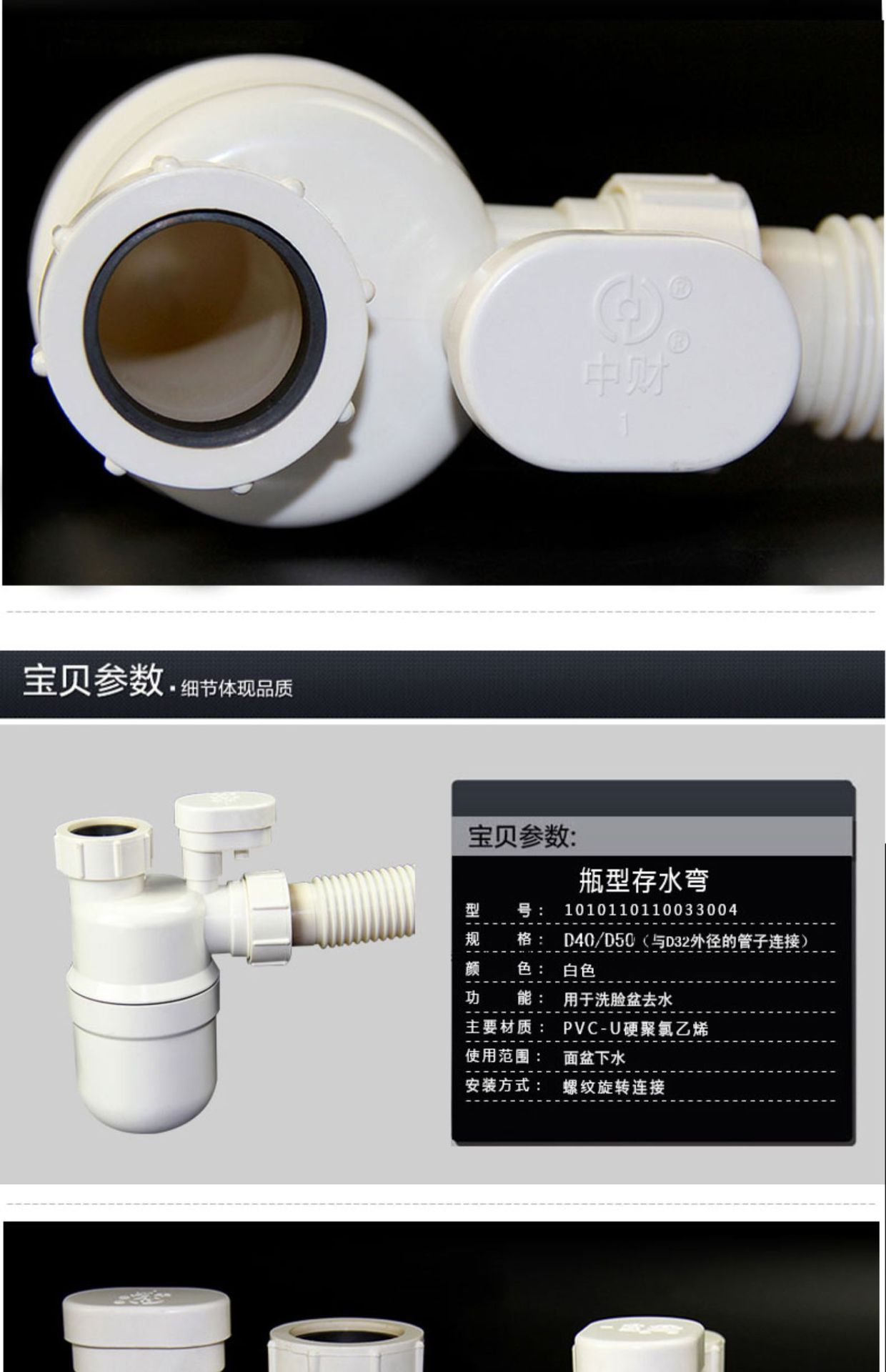 メーカー卸売り中財PVC排水管下水管継手のオーバーフロー防止ソリューションボトル型貯水曲げ継手