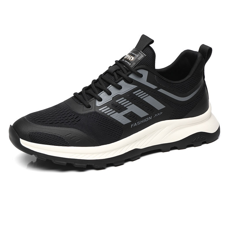 2023春の新商品の男性の薄いネットの靴の黒い面の白地の通気性の旅行の飛織の運動の潮流のランニングシューズ