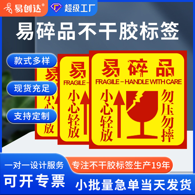 壊れやすいものの警告ラベルのステッカーは、誤って英語の壊れやすいものを誤って落としてはならないように気をつけてください