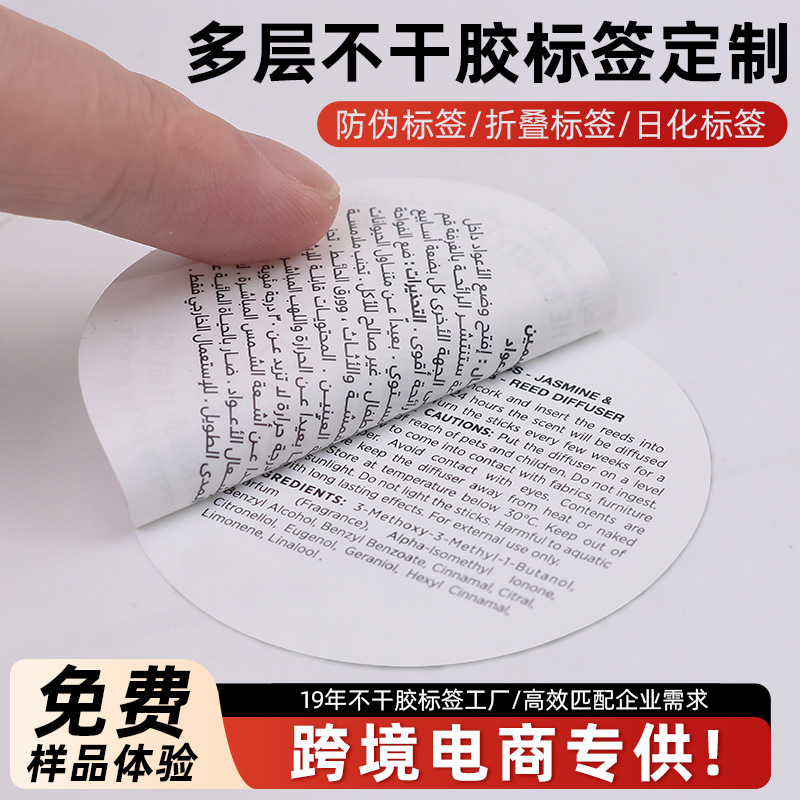 化粧品や薬瓶用の二層粘着ラベルのカスタマイズ複合多層折りたたみ説明ラベルステッカーのカスタマイズ