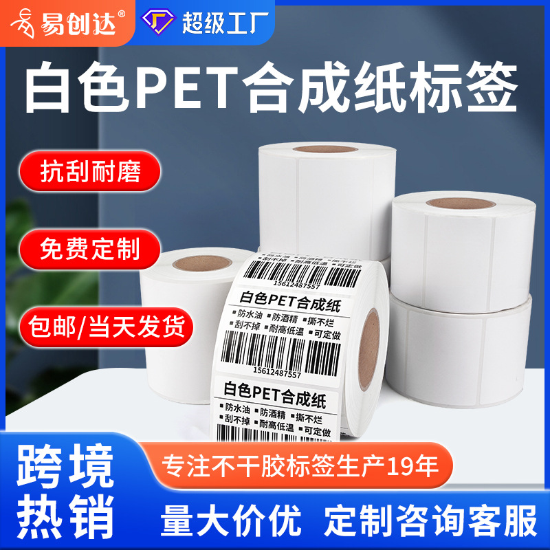 白い光沢PETラベル紙粘着ラベル 強力粘着 防水 破れにくい マット合成紙ラベルステッカー