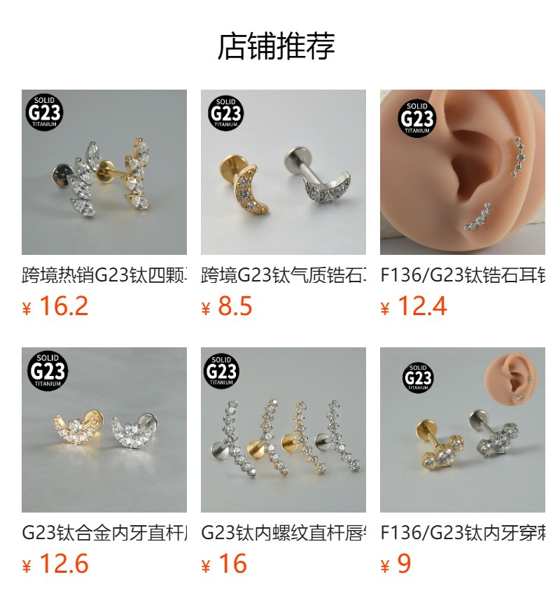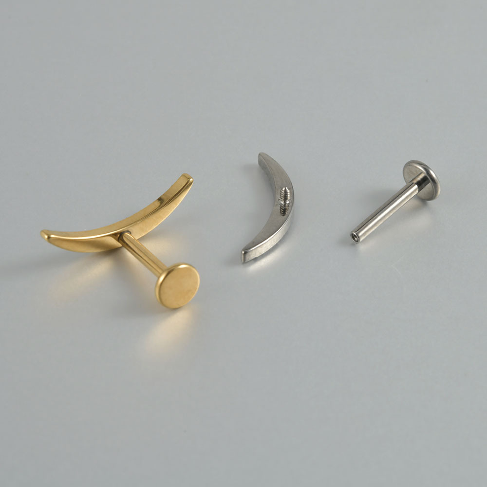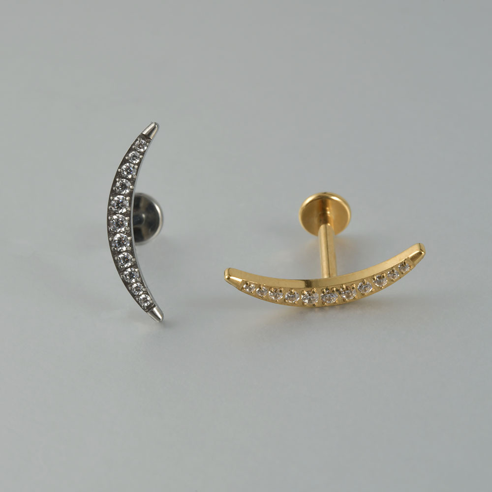【名称】:跨境F136钛合金高级感锆石月亮耳钉个性G23钛耳唇穿刺内螺纹耳环