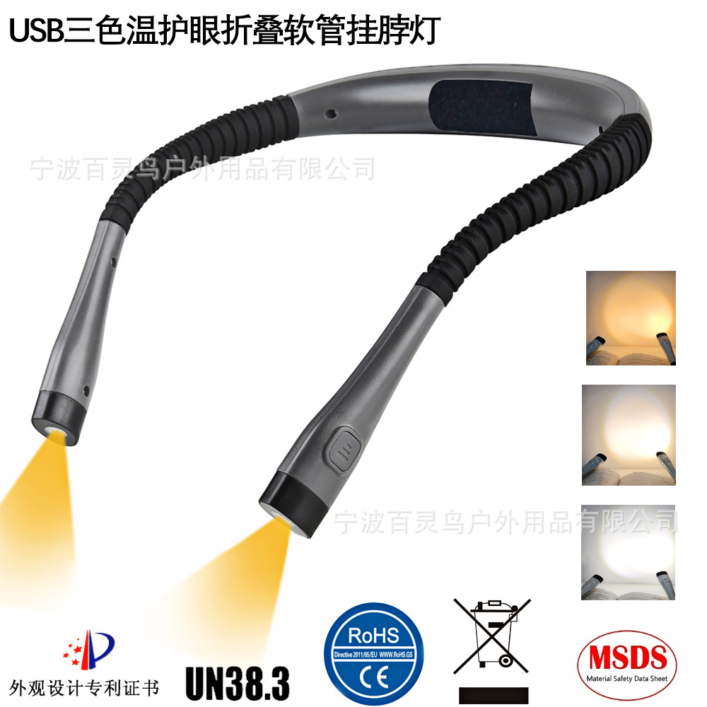 卧室USB阅读灯挂脖灯软管调节护眼阅读灯户外夜跑照明三色挂脖灯