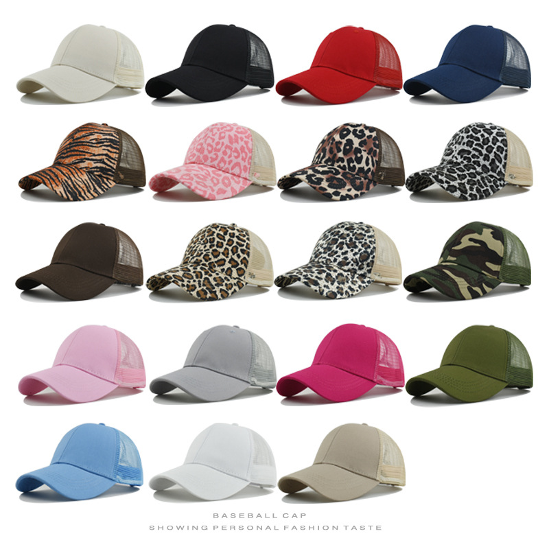 クロスボーダー新しいポニーテールホール野球帽ライトプレート夏のファッションヒョウ柄メッシュ帽子女性のパーソナライズされたベルクロ調整帽子