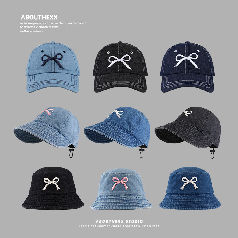 韓国の新型の蝶結びの刺繍の帽子の子供は顔を見せます。