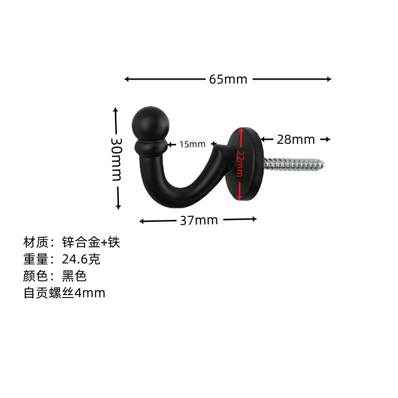国境を越えた亜鉛合金カーテンフック壁フードの間に黒いフック戸棚たんすトイレシングルフック