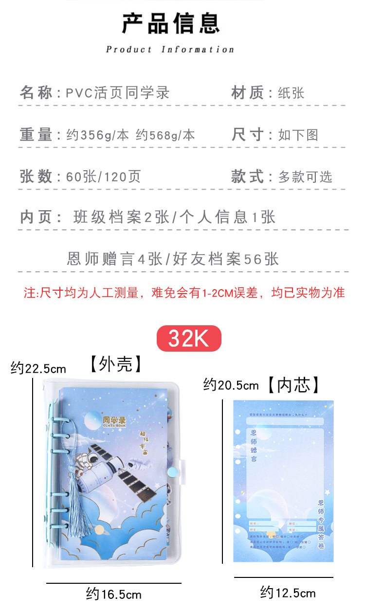 2024新型PVCバインダー同級生録小学校中学生バインダーアニメ卒業記念帳女子学生高颜値