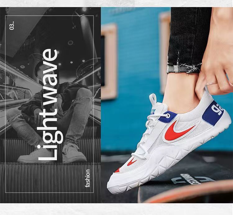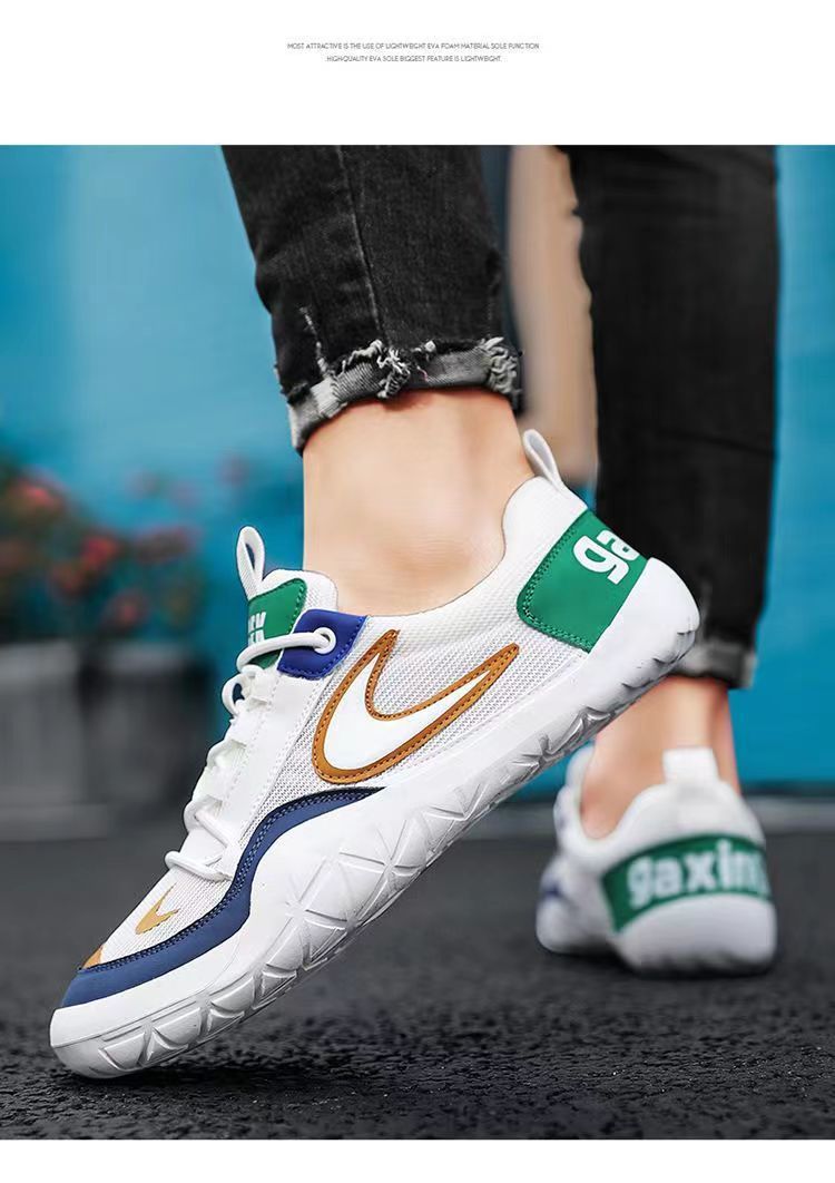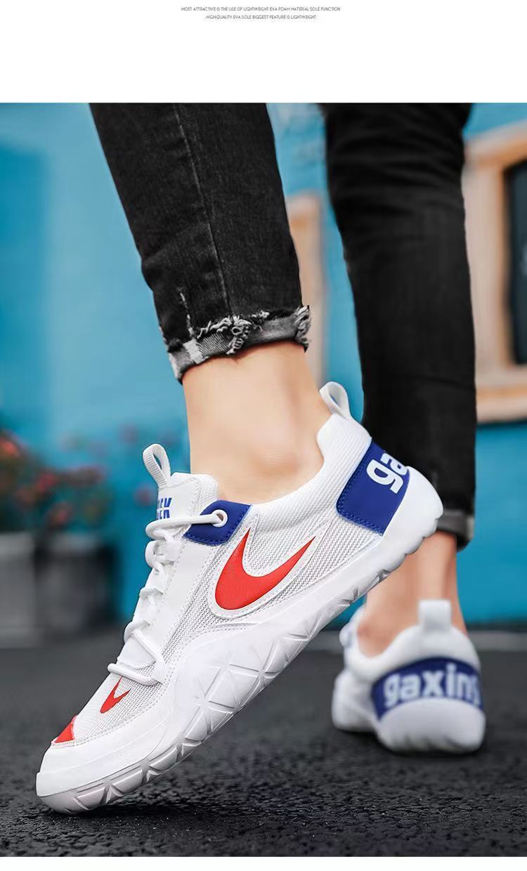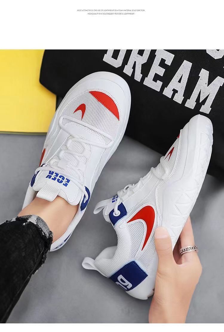 男靴2024新型夏ネットレジャー運動靴ランニングソフト底青少年阿甘白靴代発