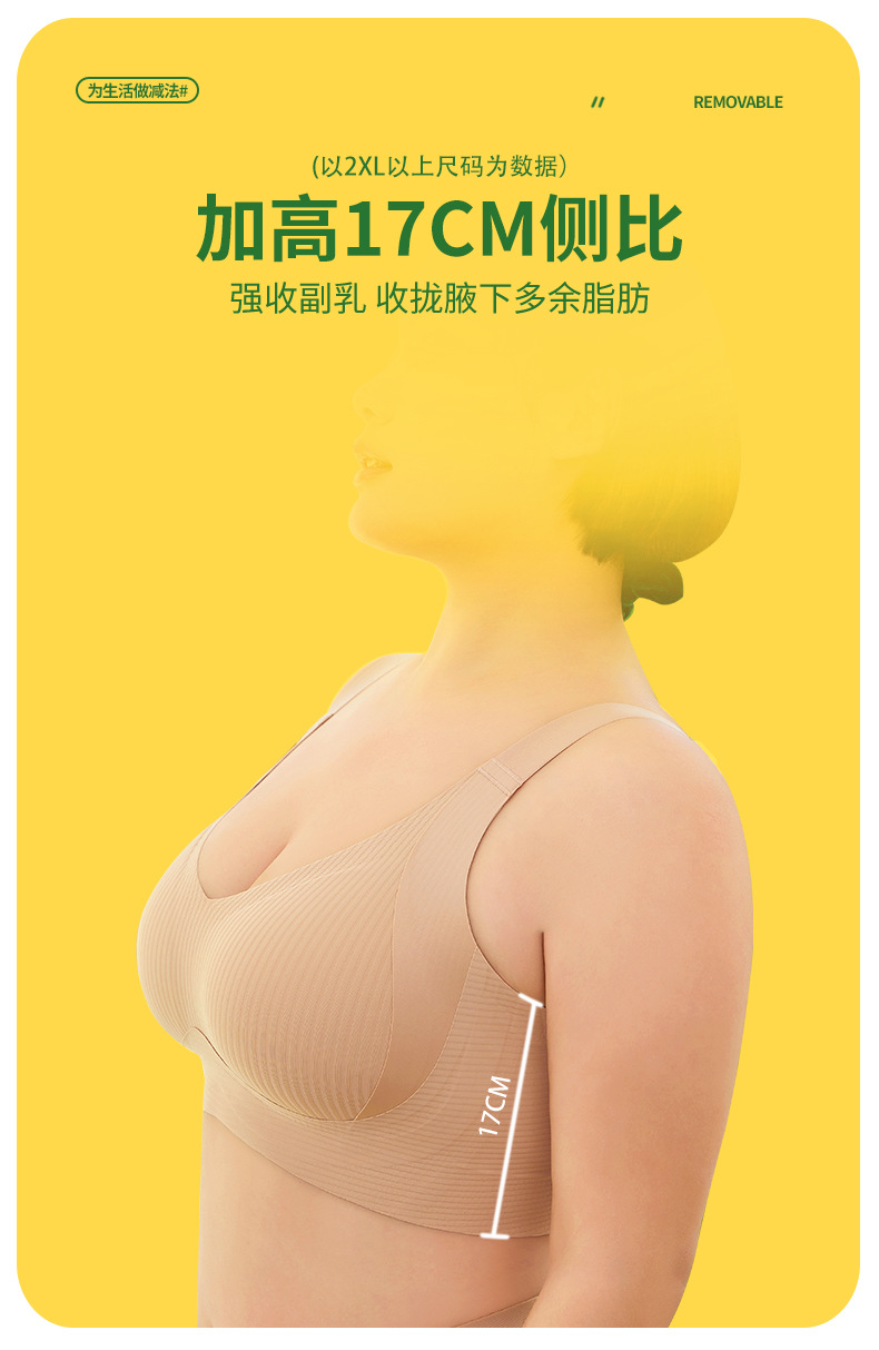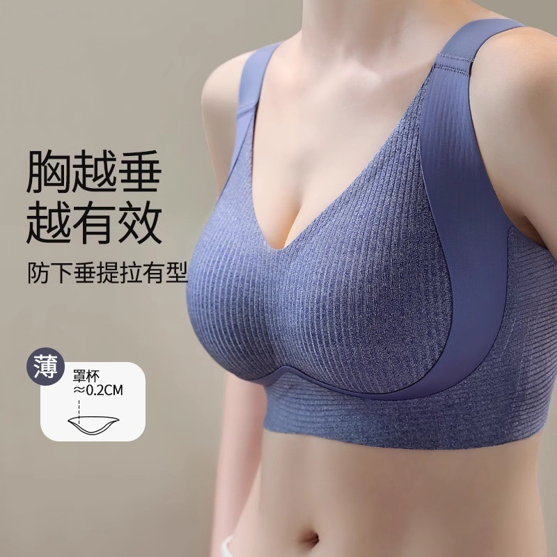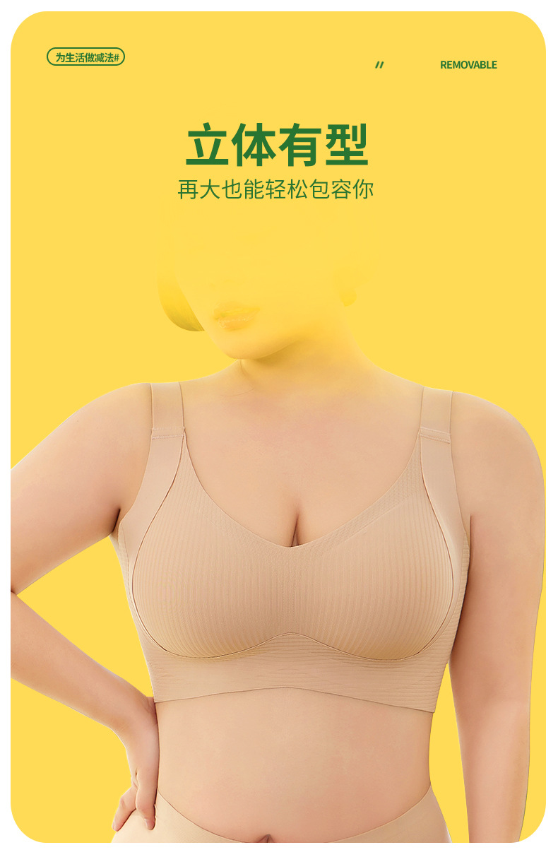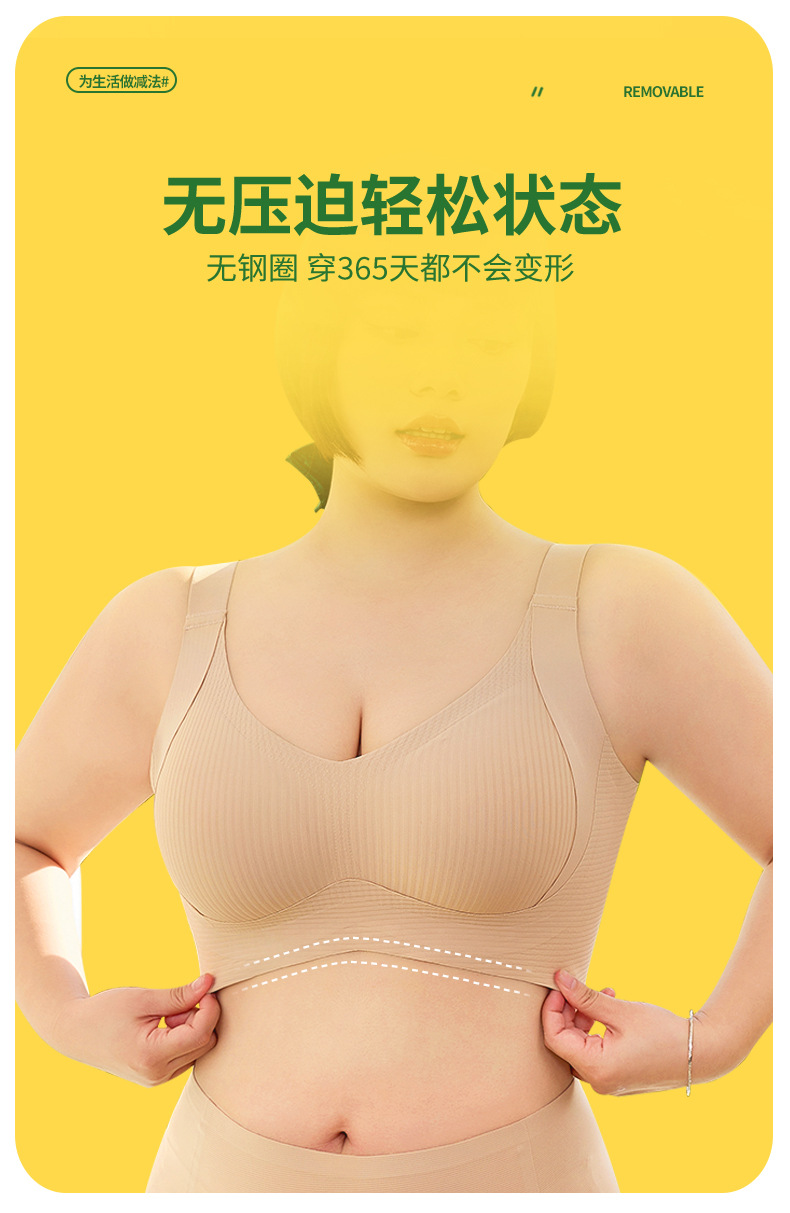 無痕粉底液ステルス下着女性夏の薄いタイプのスチールリングのない大きい胸は小さくて快適で、痩せています。