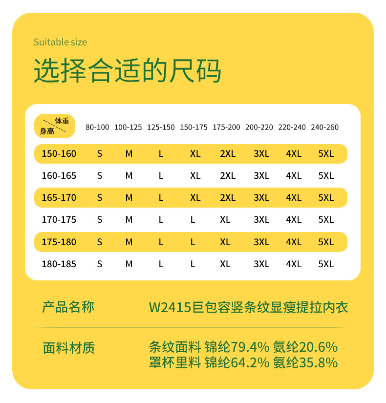 サイズ M [75CDEFG/80B推奨45-55kg],L [80CDEFG/85B推奨55-65kg],XL [85CDEFG/90B推奨65-80kg],2XL [90CDEFG/95B推奨80-90kg],3XL [95CDEFG/100B推奨90-100kg],4XL [100CDEFG/105B推奨100-125kg]